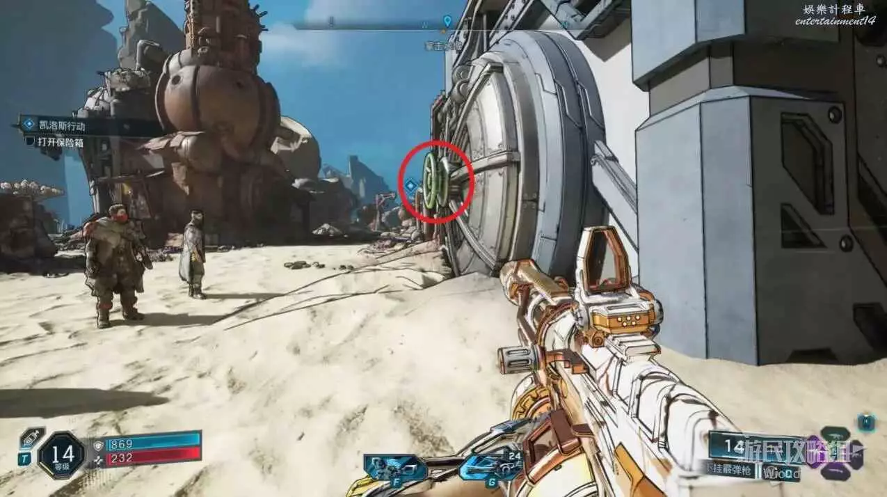 把小吵鬧接上來走到左邊的小門旁,按下近戰按鍵攻擊門進入安全屋。