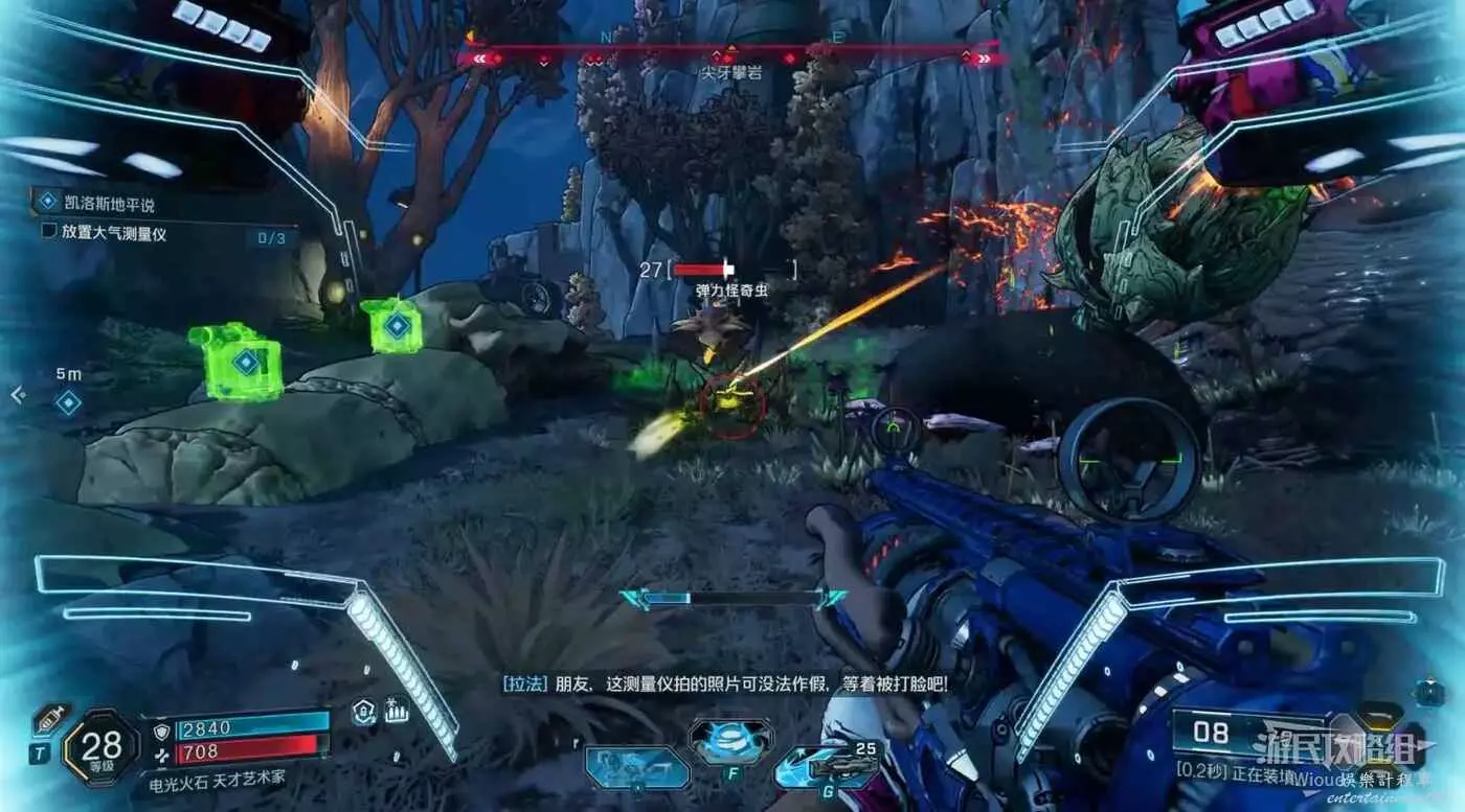 移動到下一個指引點,先把蟲群清理乾淨,把測量儀放到旁邊綠色高光處。