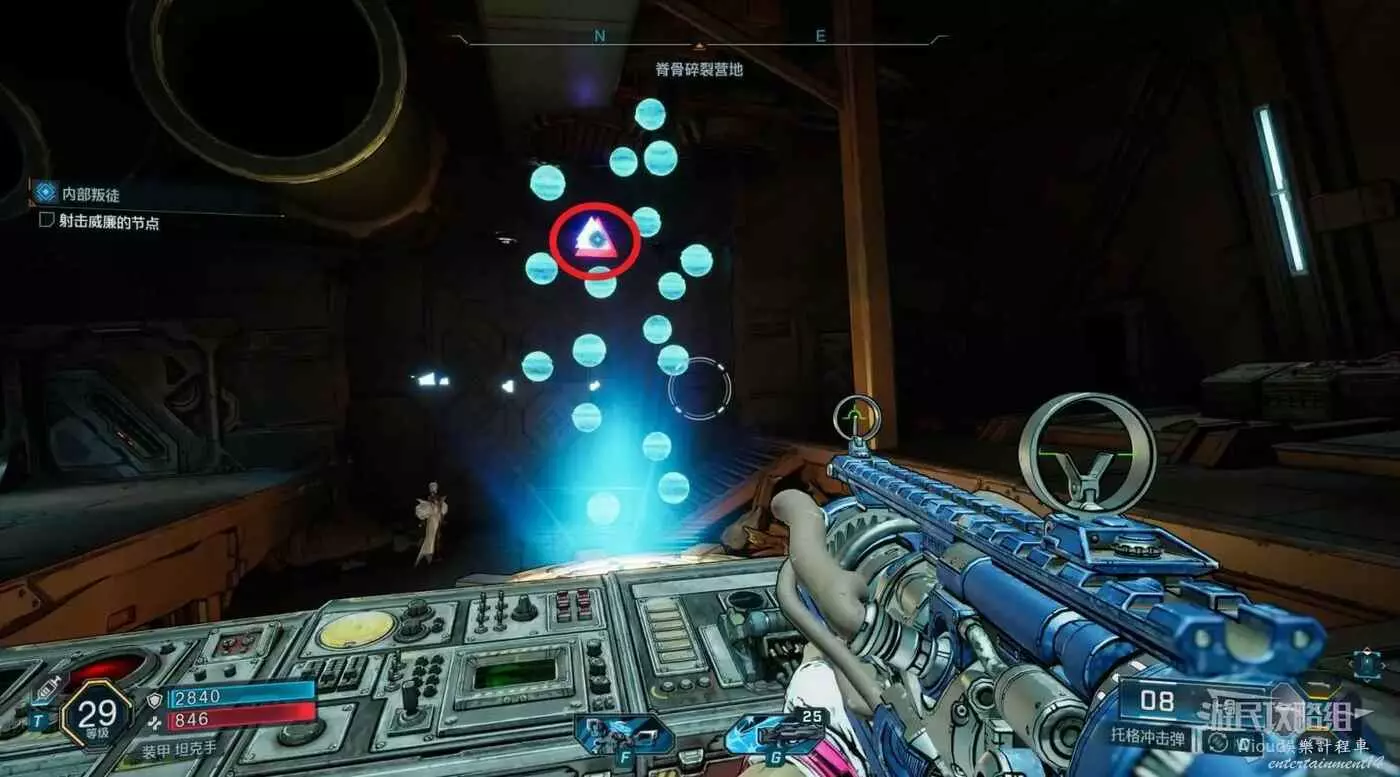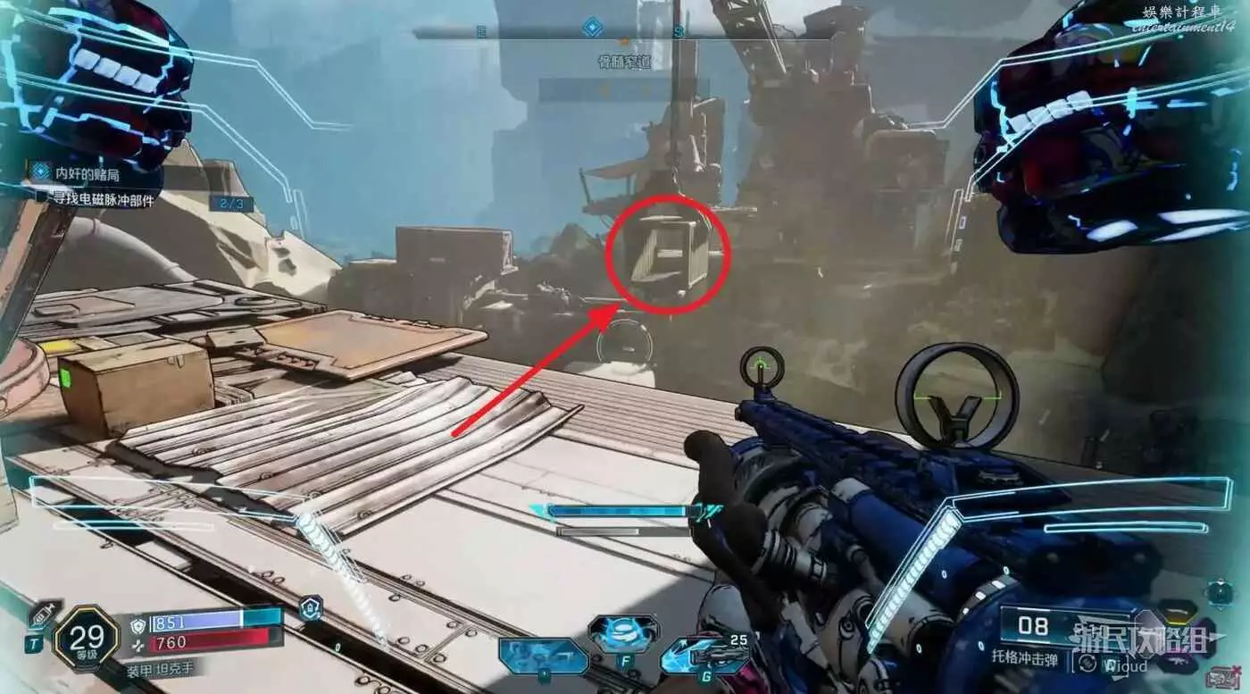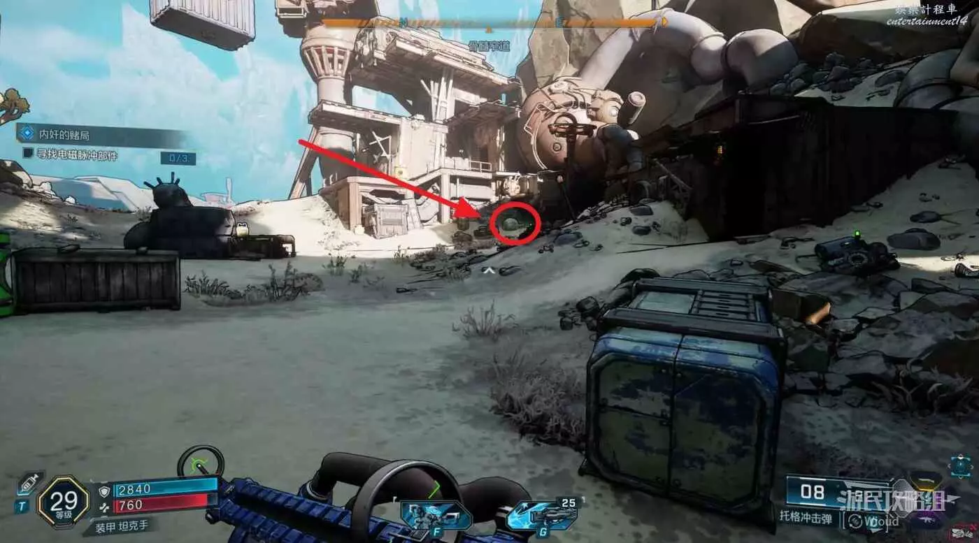 開啟新節點需要找到3個電磁脈衝部件,往指引區域走。