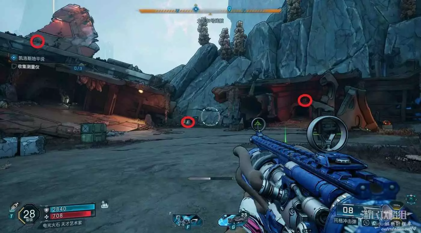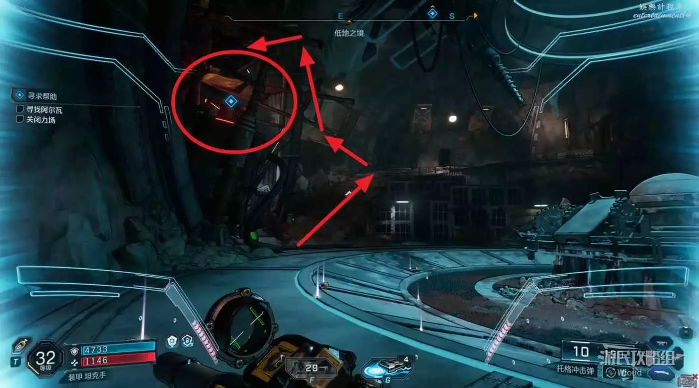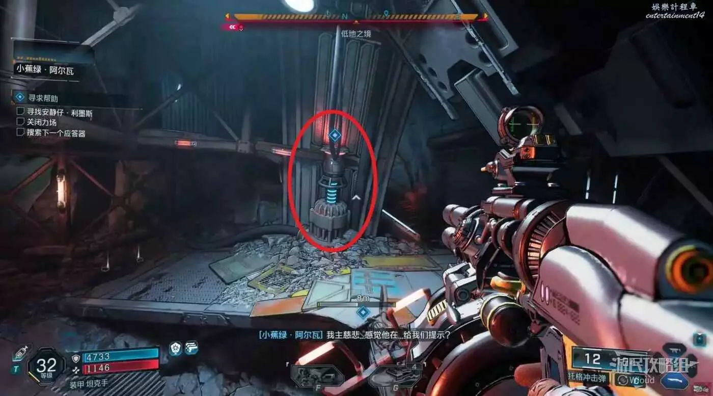開啟新節點需要找到3個電磁脈衝部件,往指引區域走。