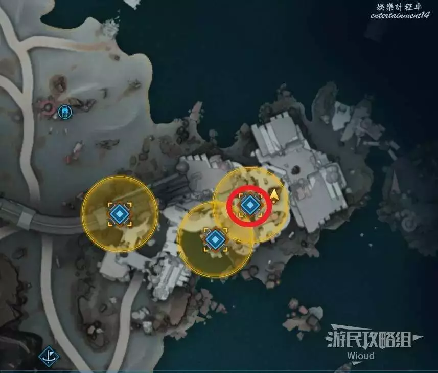 到達指引區域需要先進行一個解謎,注意周圍有三個被標註的塔。