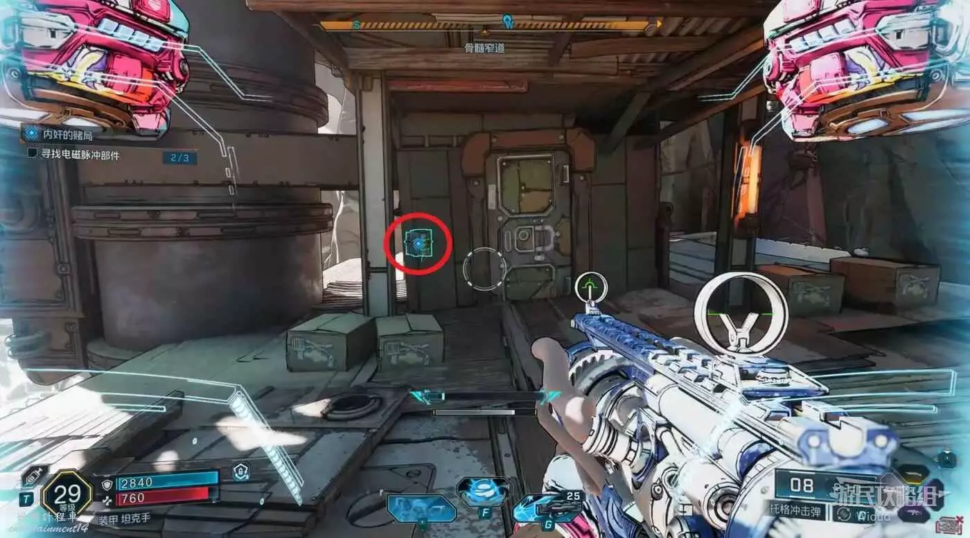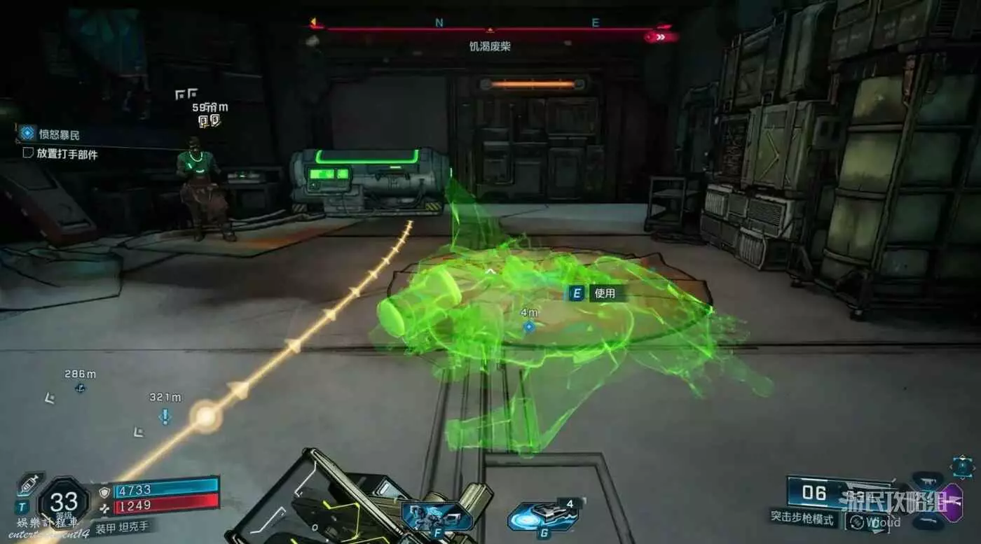 前面跳下去拾取帶標識的物品,前往饑渴廢柴的一個倉庫內組裝物品。
