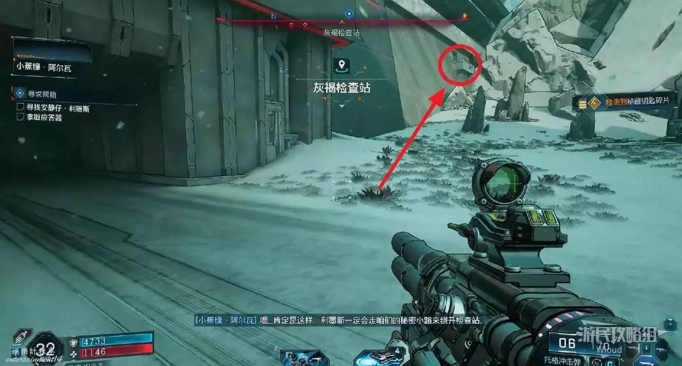 移動到主要節點的城鎮裡,先把周圍槍械全部幹掉,等節點更新時範圍指引會變成詳細的位置指引。