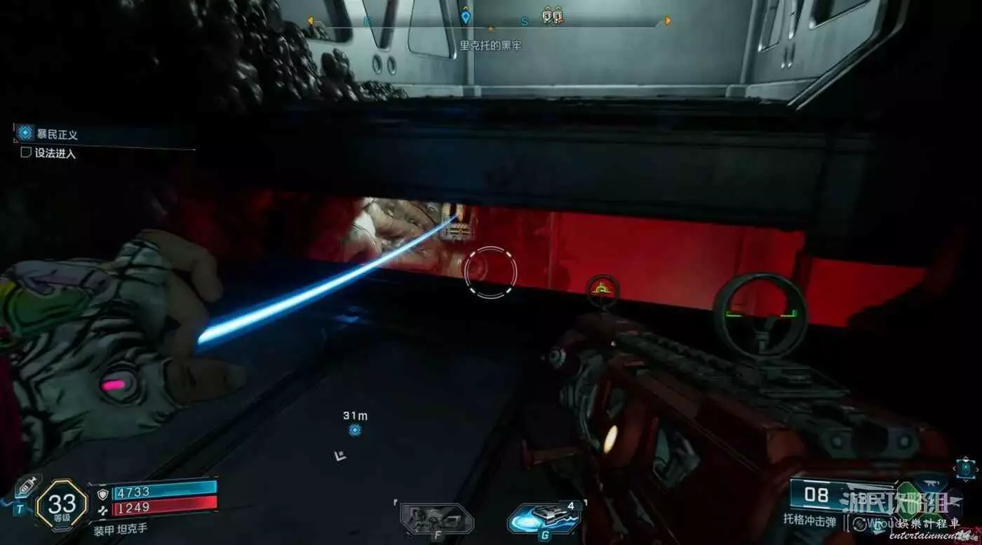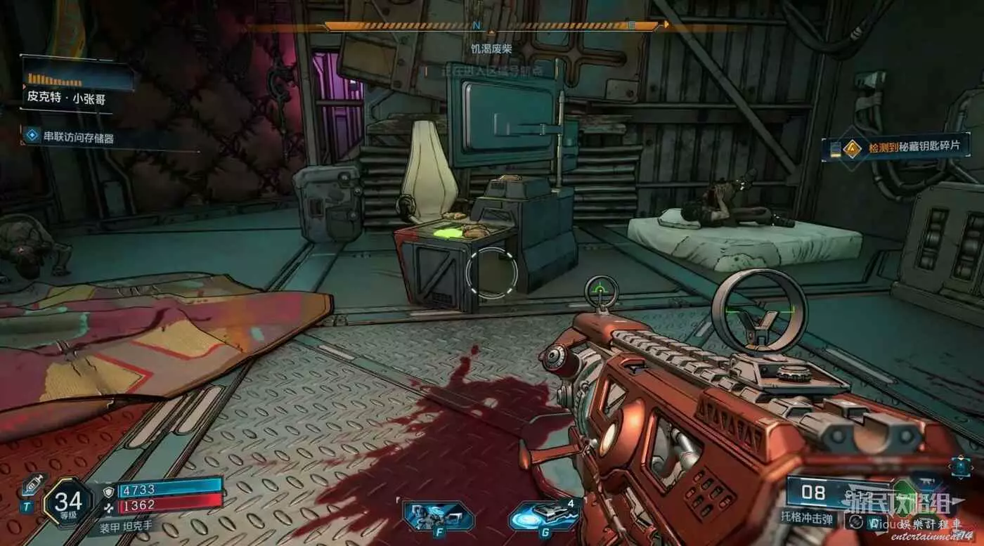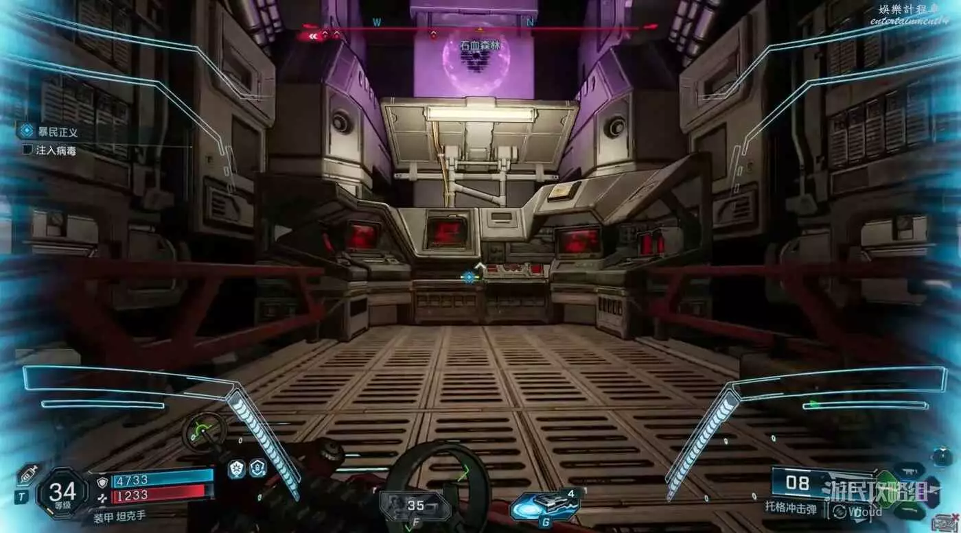 後續就跟著布魯斯一直打到終點,跟著藍色指引走,將病毒插到控制台。