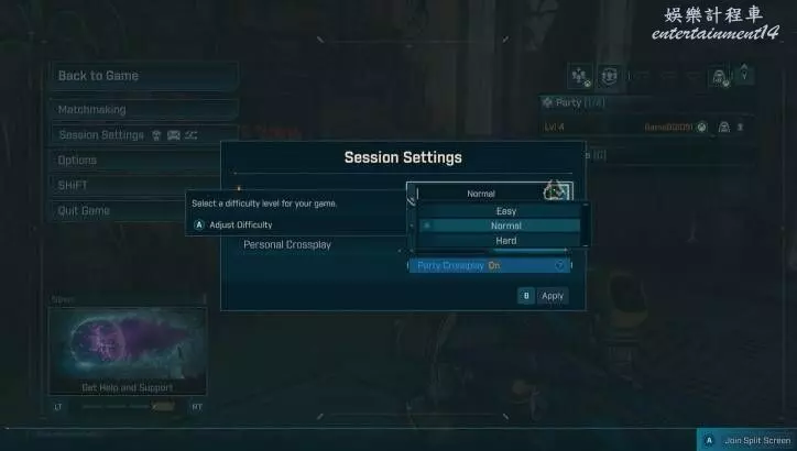 在暫停功能表或主功能表中進入「會話設置」標籤頁,選擇所需難度後點擊「應用」即可。該操作可在遊戲過程中隨時進行,無需重置角色進度。