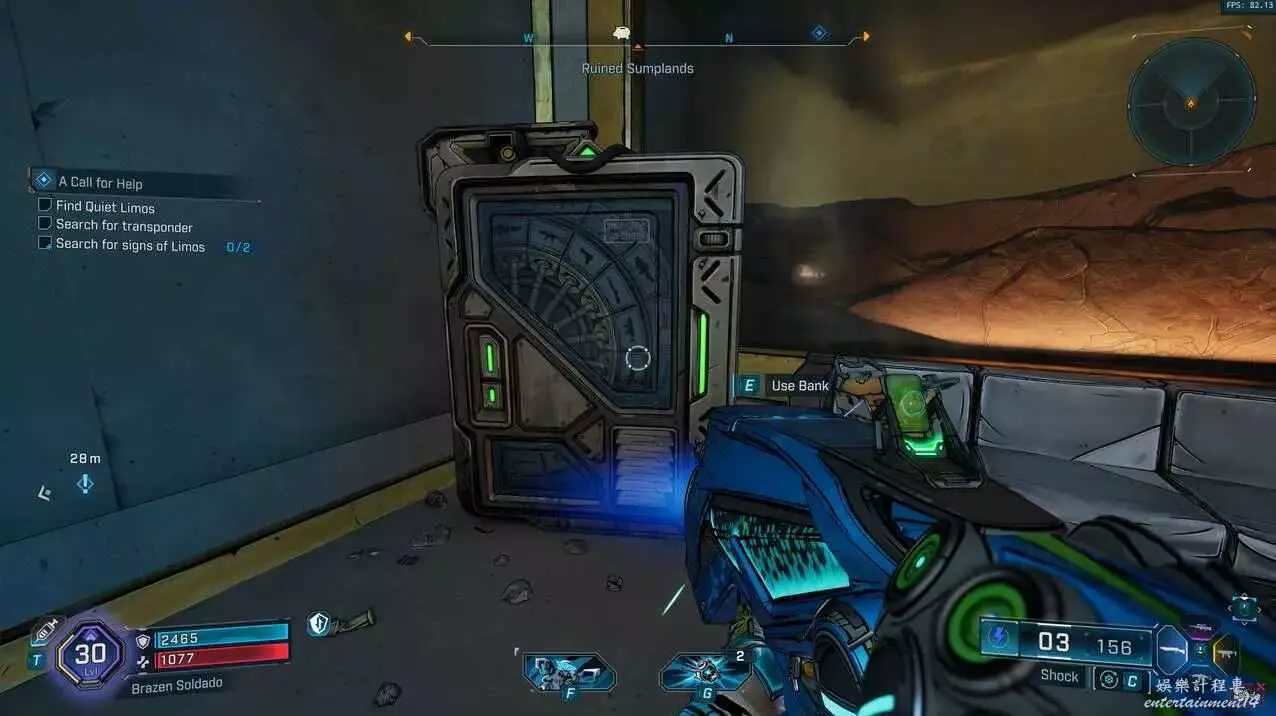 找到銀行金庫後,與機器互動,你最多可以存入 25 件武器和 / 或裝備。