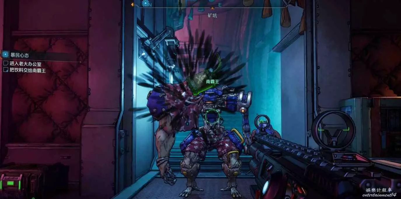 隨後返回大廳吧台與NPC互動,取得左側酒瓶並直接投擲至南霸王臉上。