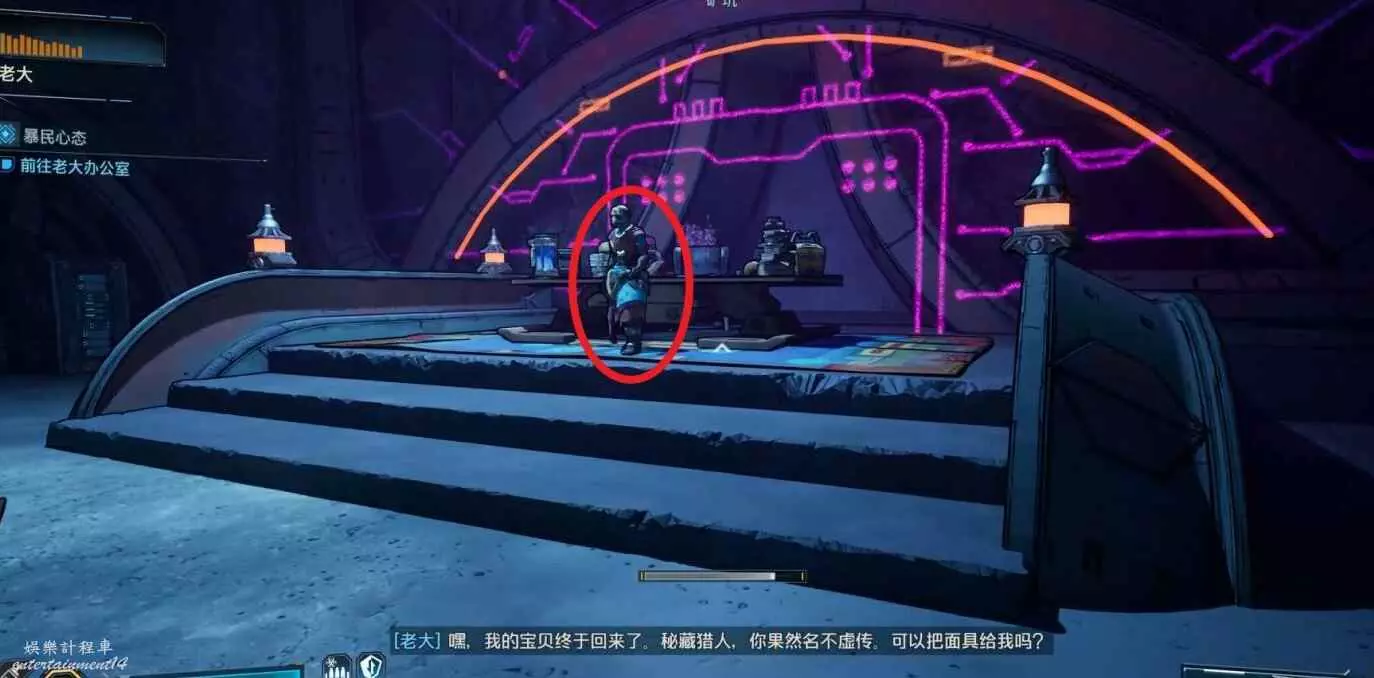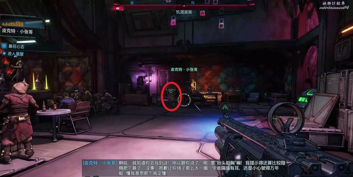 首先前往營地上方區域中“老大”所在的酒吧。