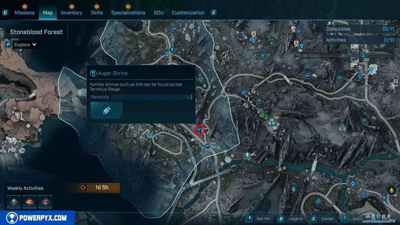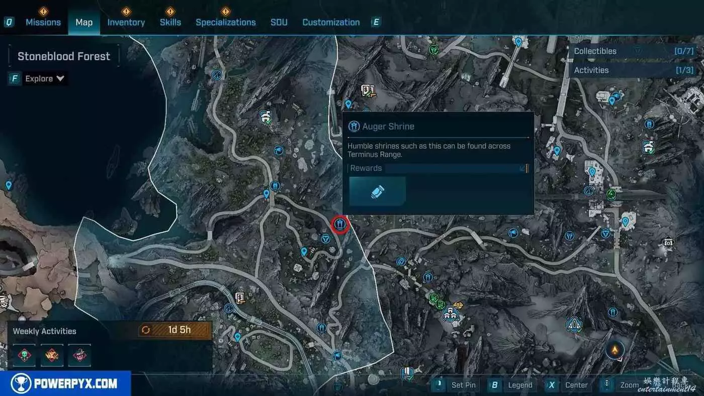 強化人神殿是一種小型神龕,互動後進行祈禱即可收集,可以在地圖介面的各個區域處按□鍵(PS5)/X鍵(Xbox)/F鍵(PC)來查看當前收集進度,還可以通過按【方向鍵-右】(PS5/Xbox)/B鍵(PC)來篩選特定圖示。