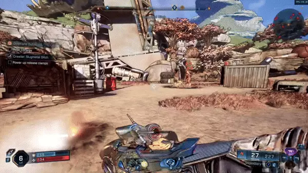 爆炸桶與投擲物(通過抓鉤使用)也可作為元素傷害來源。其造成的元素傷害類型通常通過顏色標識(如紅色代表火焰,黃色代表輻射)。