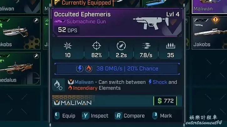 馬里旺武器尤其傾向於提供可切換元素類型作為其廠商部件特性。如上圖所示的火焰與電擊雙屬性SMG,允許您在元素間切換。