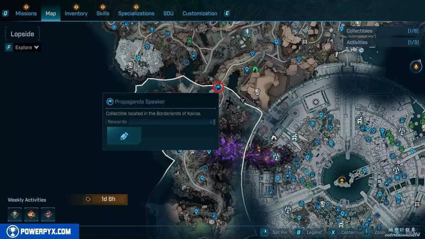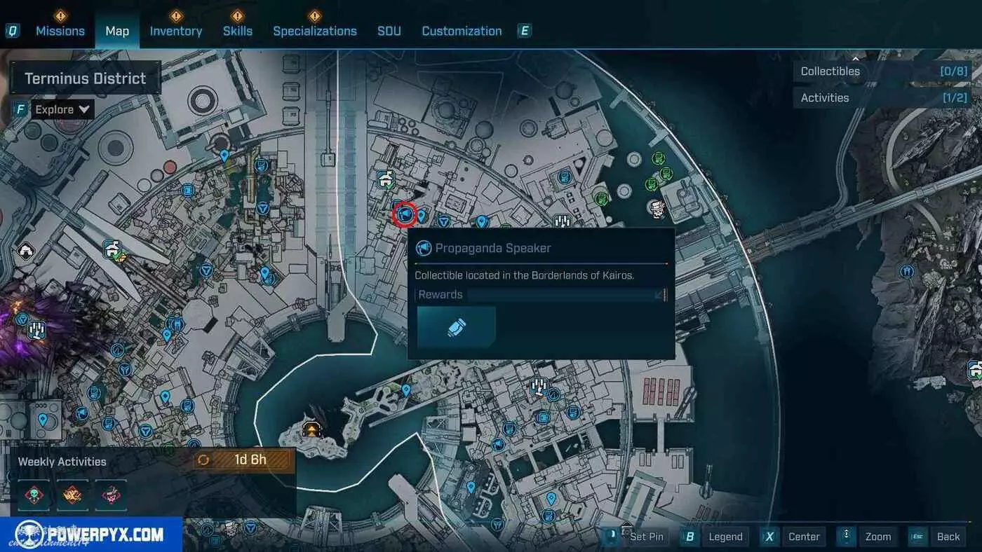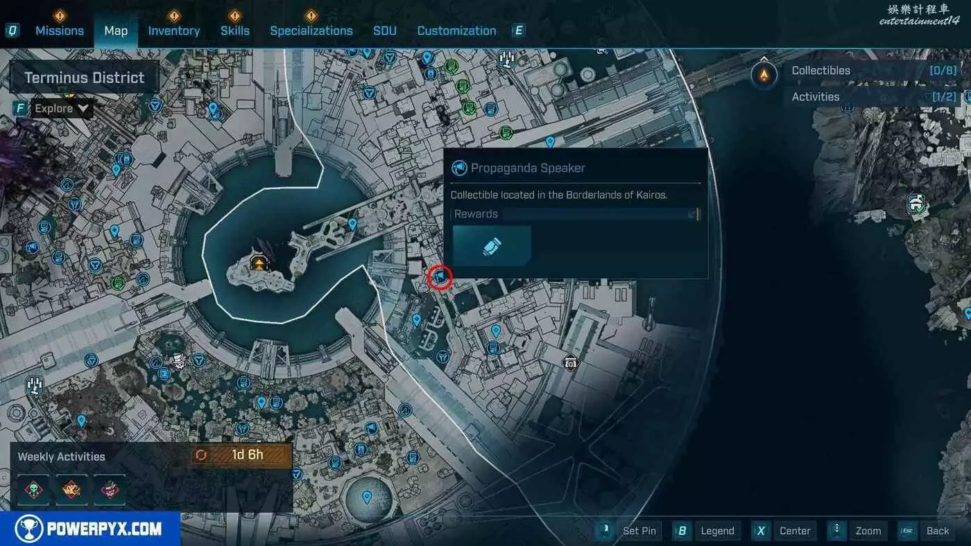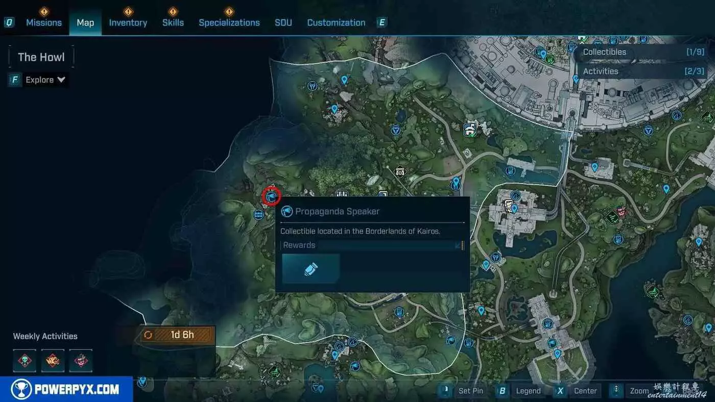 宣傳大喇叭總共有27個,收集會計入區域完成度,與大喇叭互動後,無人機ECHO-4會入侵大喇叭,隨後會出現敵人,玩家需要幫助無人機清掉出現的敵人。可以在地圖介面的各個區域處按□鍵(PS5)/X鍵(Xbox)/F鍵(PC)來查看當前收集進度,還可以通過按【方向鍵-右】(PS5/Xbox)/B鍵(PC)來篩選特定圖示。