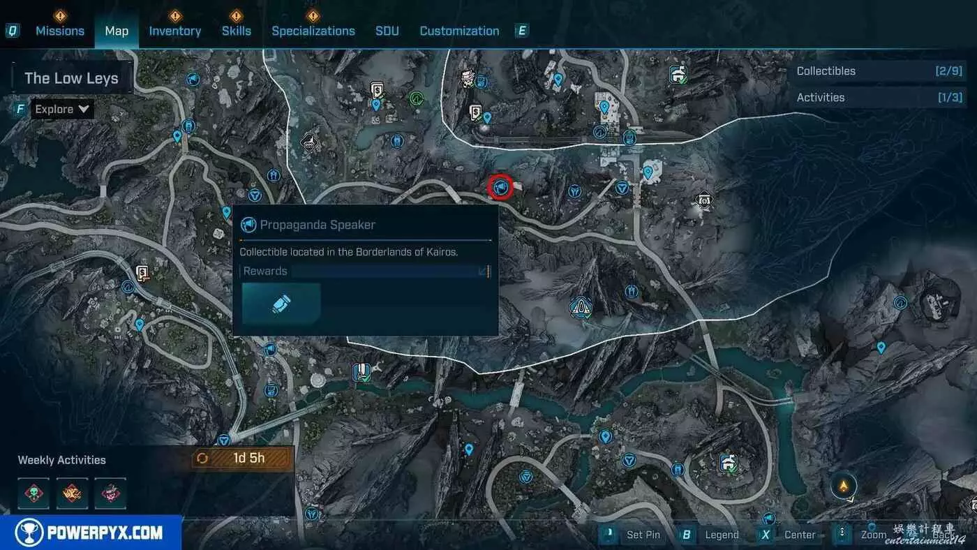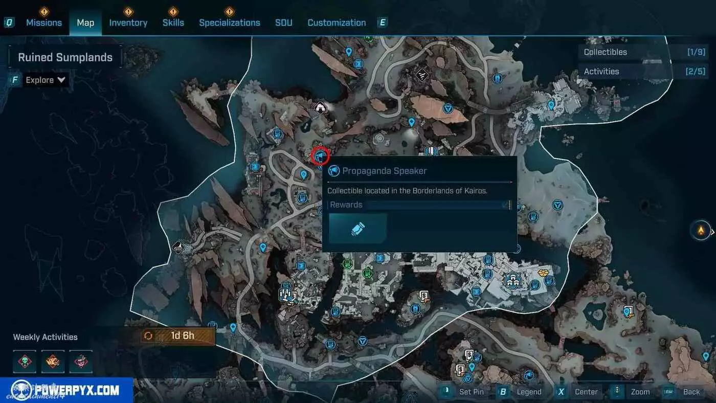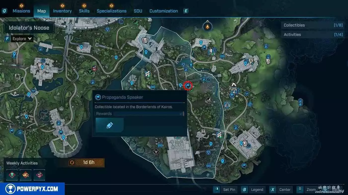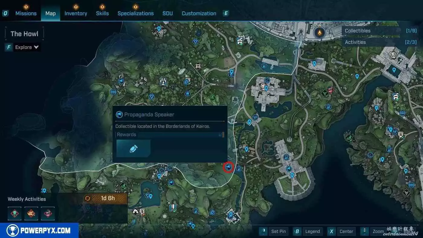宣傳大喇叭總共有27個,收集會計入區域完成度,與大喇叭互動後,無人機ECHO-4會入侵大喇叭,隨後會出現敵人,玩家需要幫助無人機清掉出現的敵人。可以在地圖介面的各個區域處按□鍵(PS5)/X鍵(Xbox)/F鍵(PC)來查看當前收集進度,還可以通過按【方向鍵-右】(PS5/Xbox)/B鍵(PC)來篩選特定圖示。