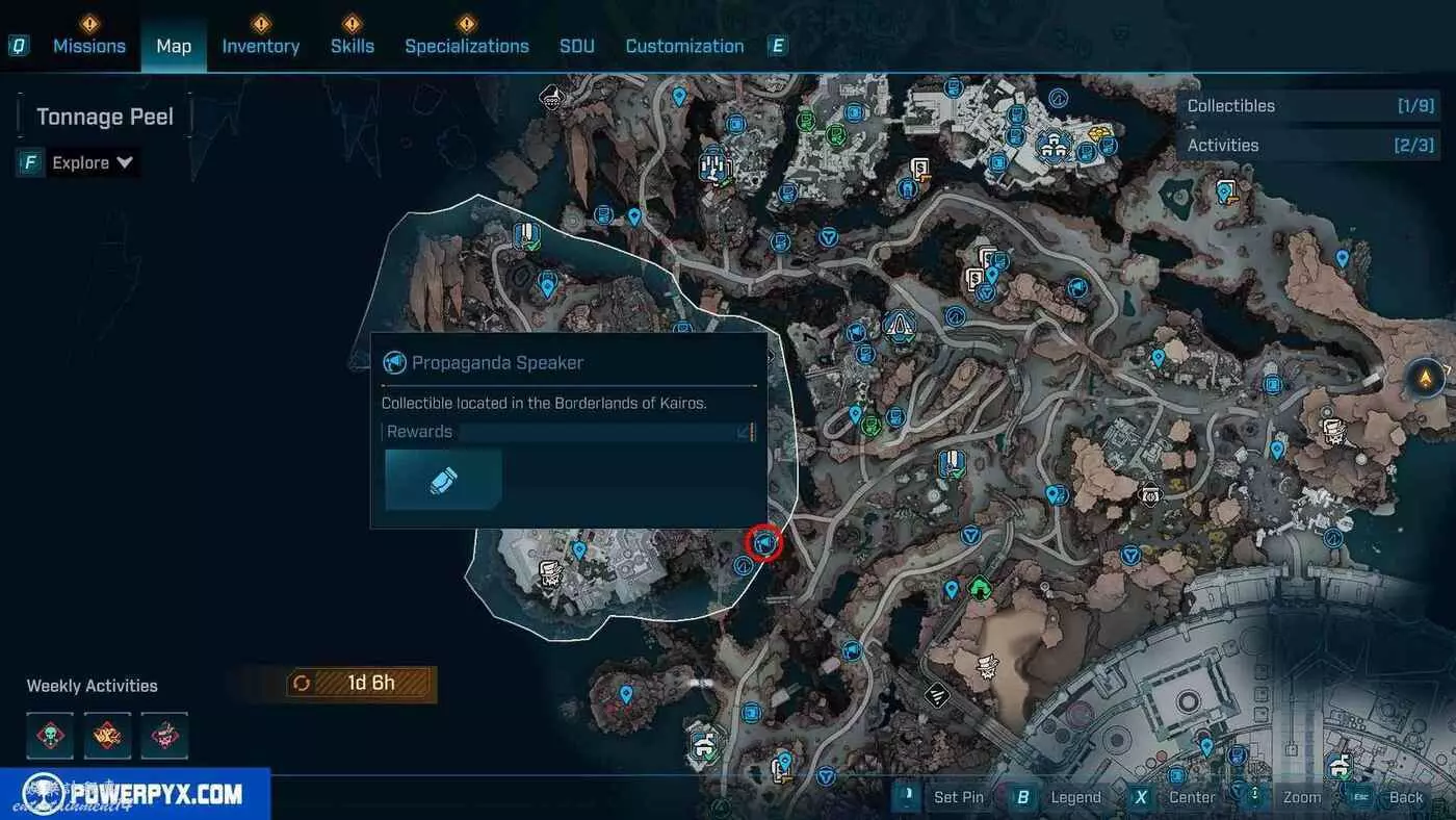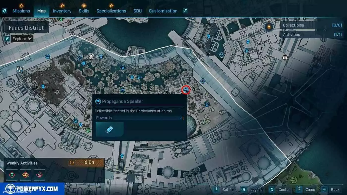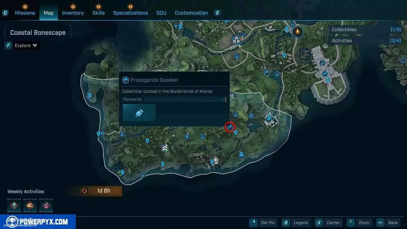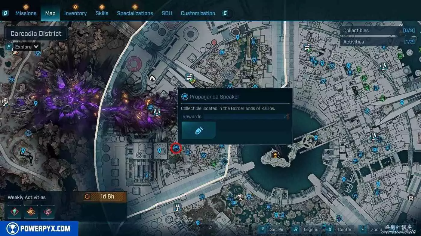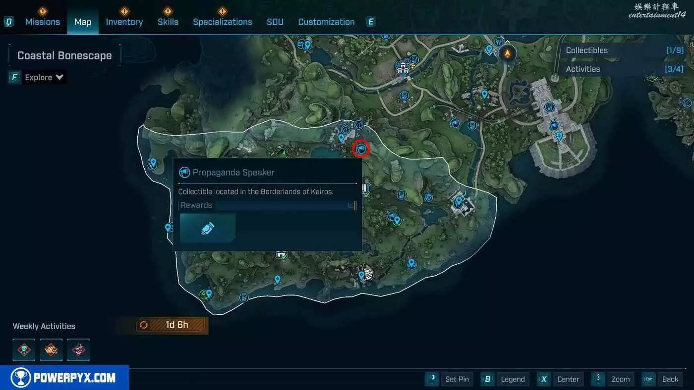 宣傳大喇叭總共有27個,收集會計入區域完成度,與大喇叭互動後,無人機ECHO-4會入侵大喇叭,隨後會出現敵人,玩家需要幫助無人機清掉出現的敵人。可以在地圖介面的各個區域處按□鍵(PS5)/X鍵(Xbox)/F鍵(PC)來查看當前收集進度,還可以通過按【方向鍵-右】(PS5/Xbox)/B鍵(PC)來篩選特定圖示。