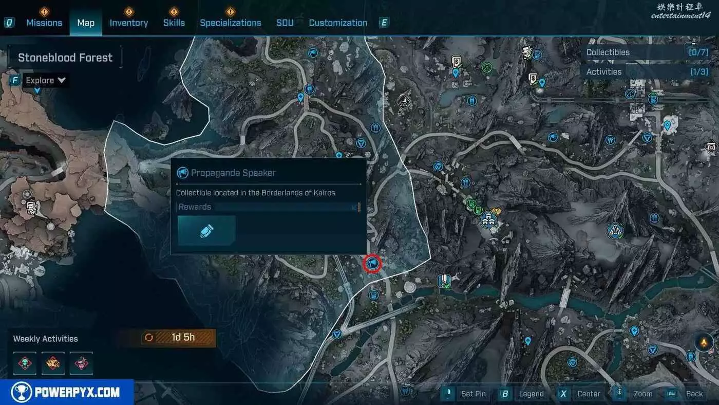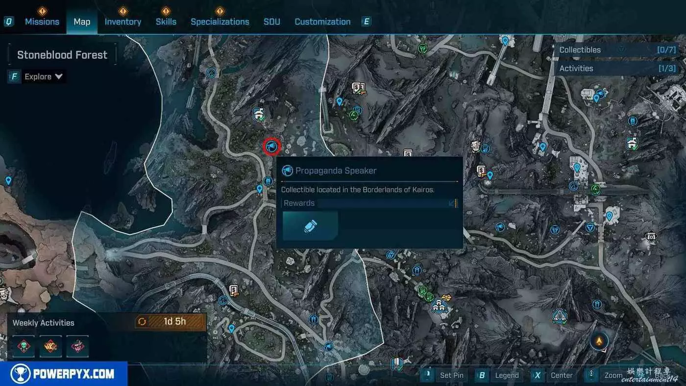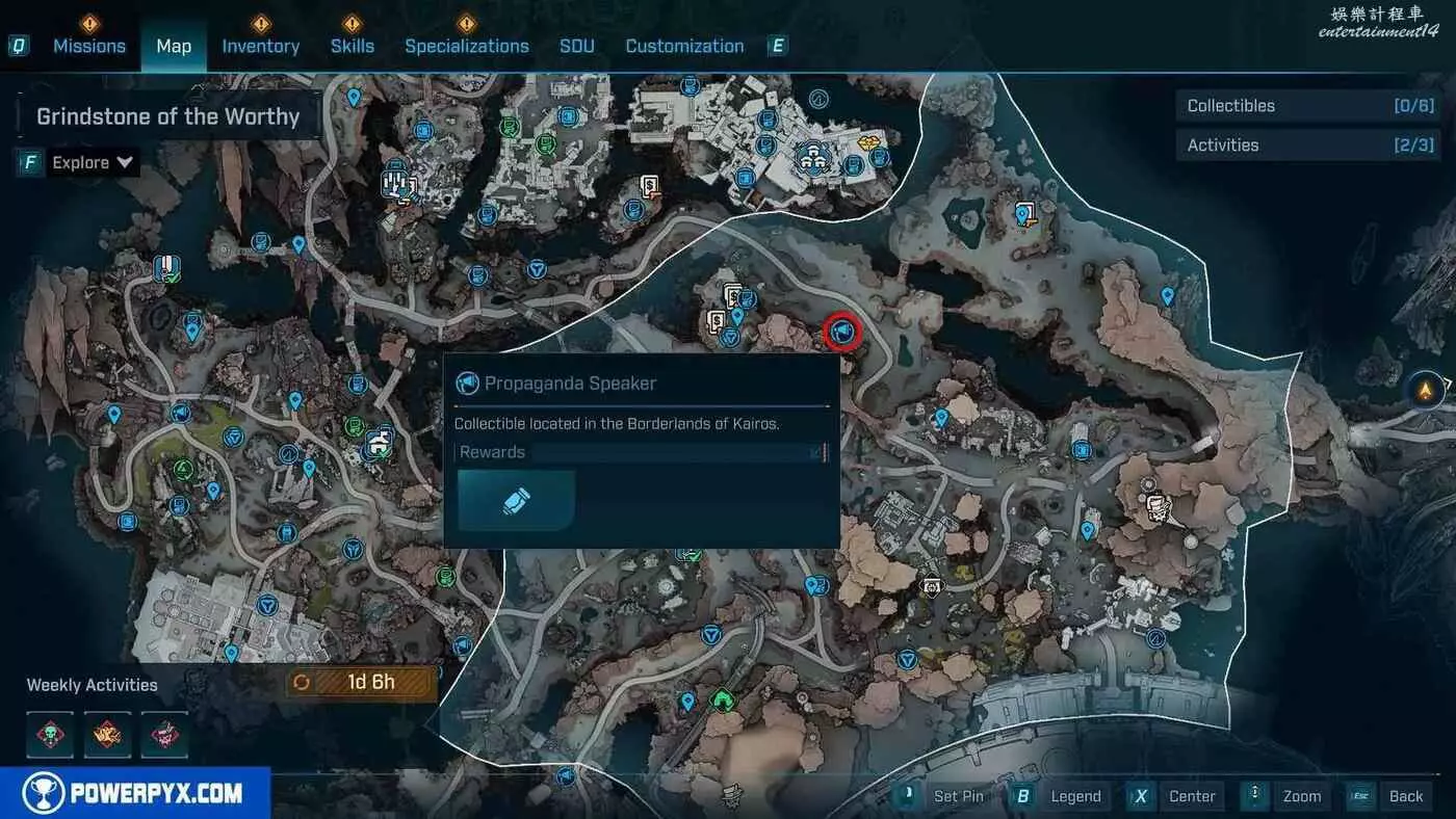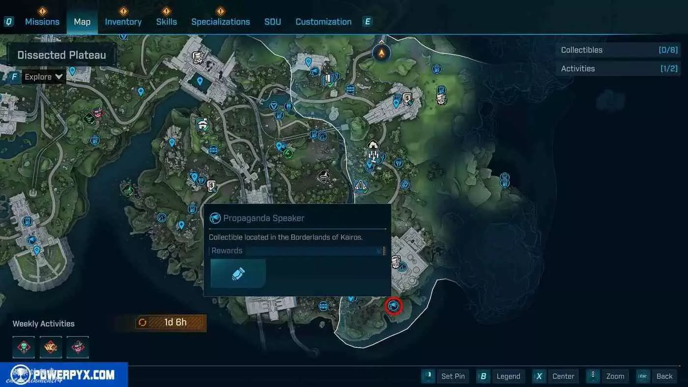 宣傳大喇叭總共有27個,收集會計入區域完成度,與大喇叭互動後,無人機ECHO-4會入侵大喇叭,隨後會出現敵人,玩家需要幫助無人機清掉出現的敵人。可以在地圖介面的各個區域處按□鍵(PS5)/X鍵(Xbox)/F鍵(PC)來查看當前收集進度,還可以通過按【方向鍵-右】(PS5/Xbox)/B鍵(PC)來篩選特定圖示。