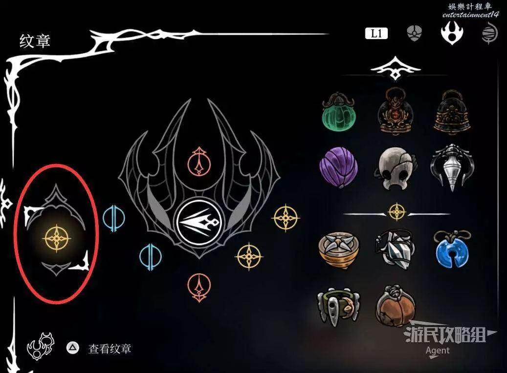右邊下去對話伊娃,升級你的初始獵手紋章。再對話獲得“蛻形紋章”,解鎖一個獨立于紋章之外的欄位,建議把羅盤放這,免得一換紋章就看不到自己在哪兒了。