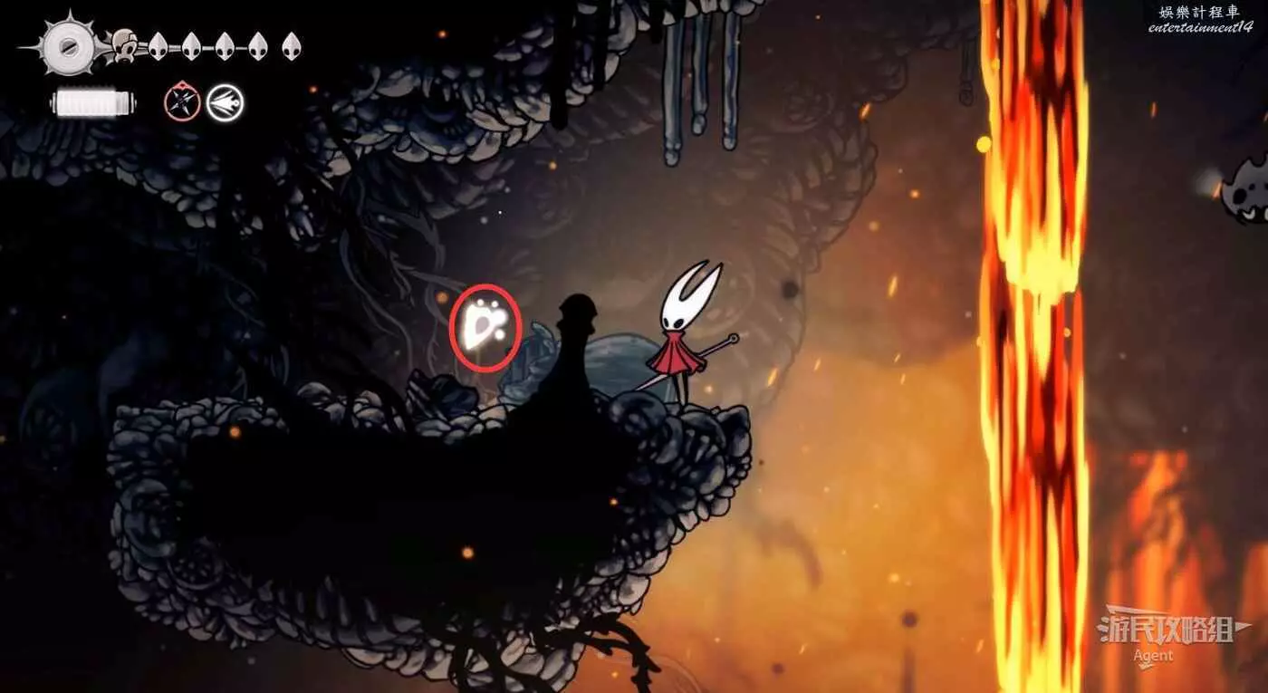 然後繼續往右,經過岩漿跳跳樂拿到【面甲殘片】。