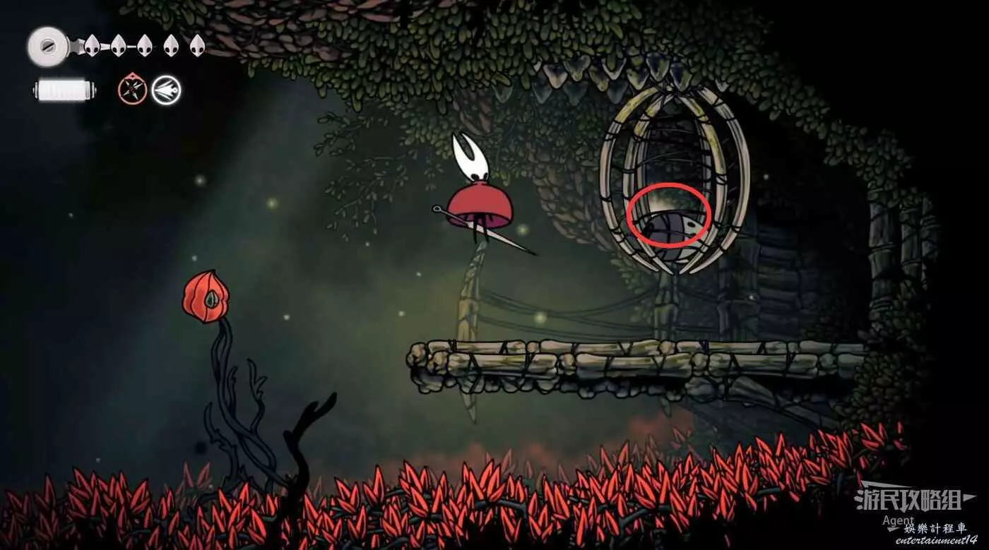 然後沿著紅色花蕾一直往上走,在頂部救出籠子裡的跳蚤。