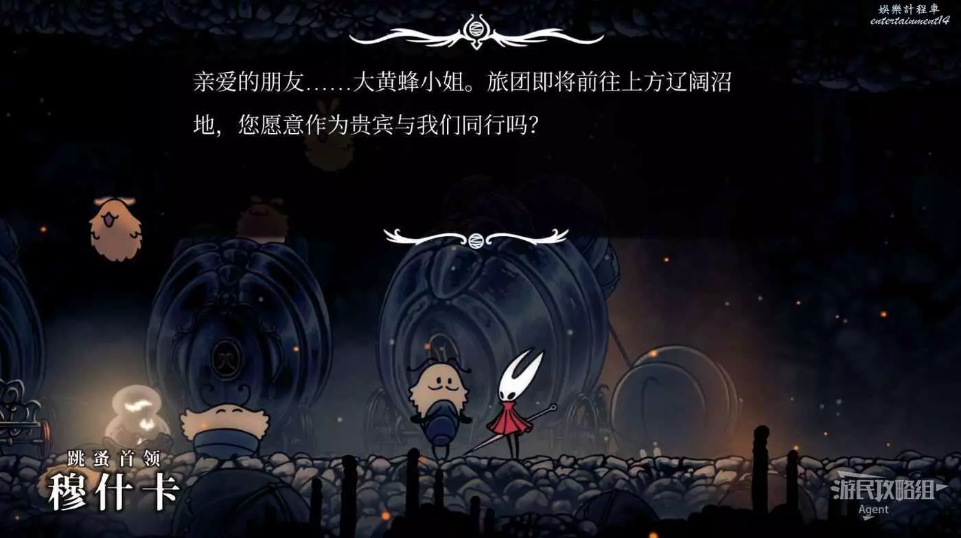 和跳蚤們一起來到灰沼,跳蚤首領旁有長椅。