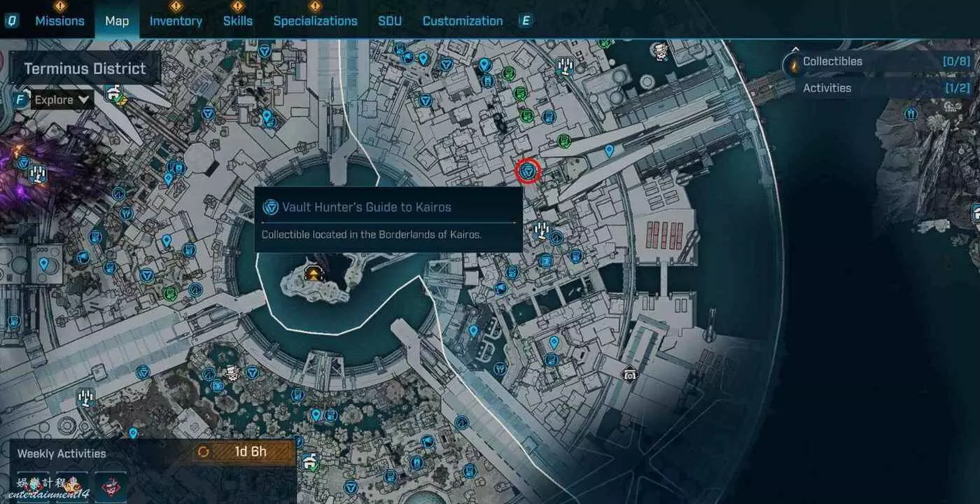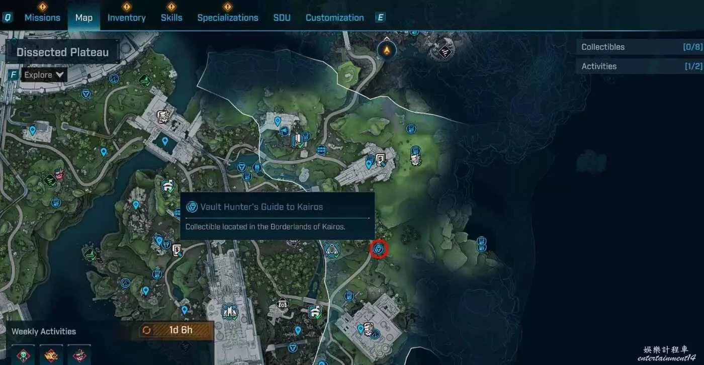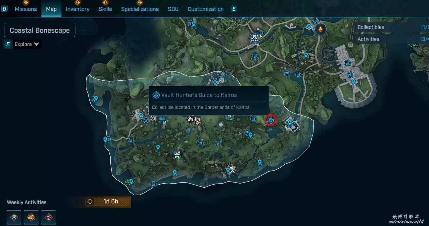 凱洛斯秘藏獵人指南共12個。在地圖介面各區域。