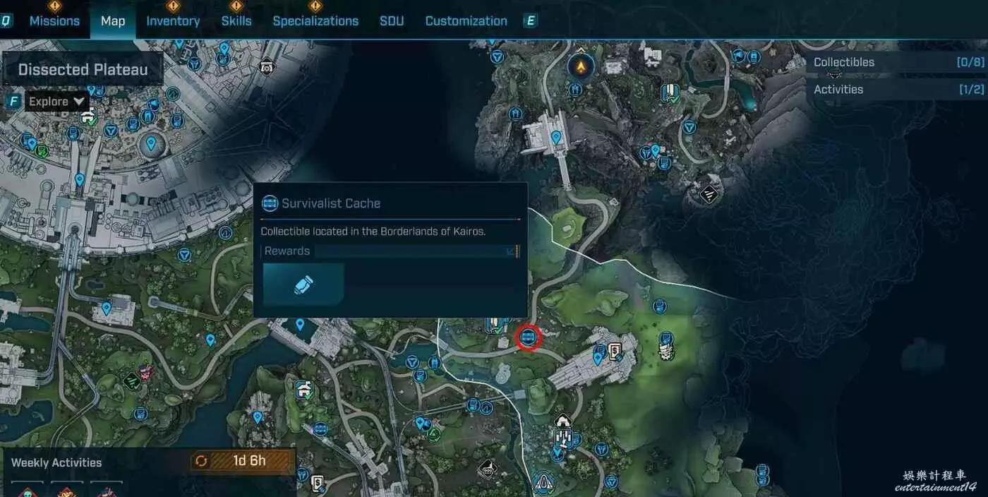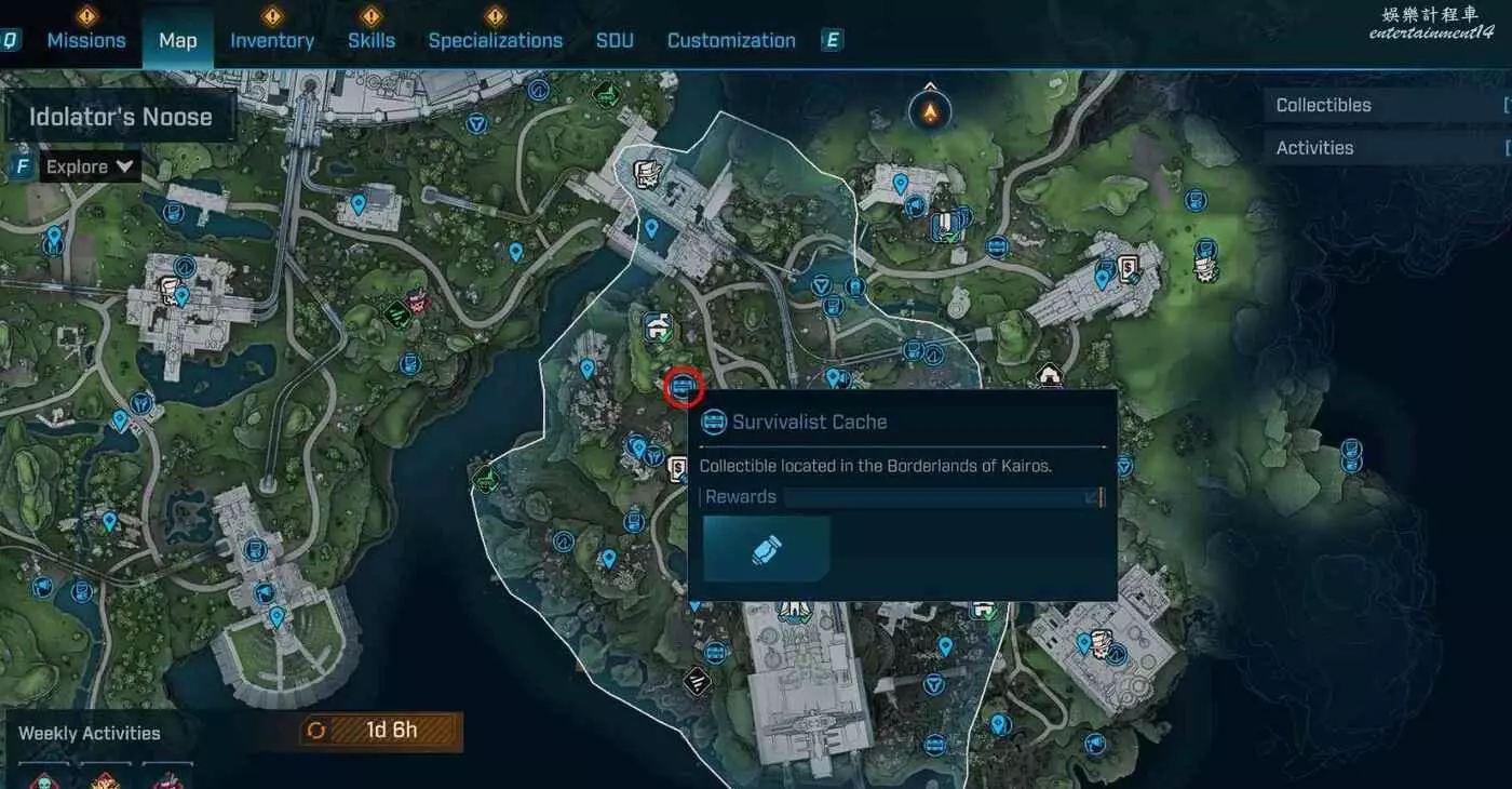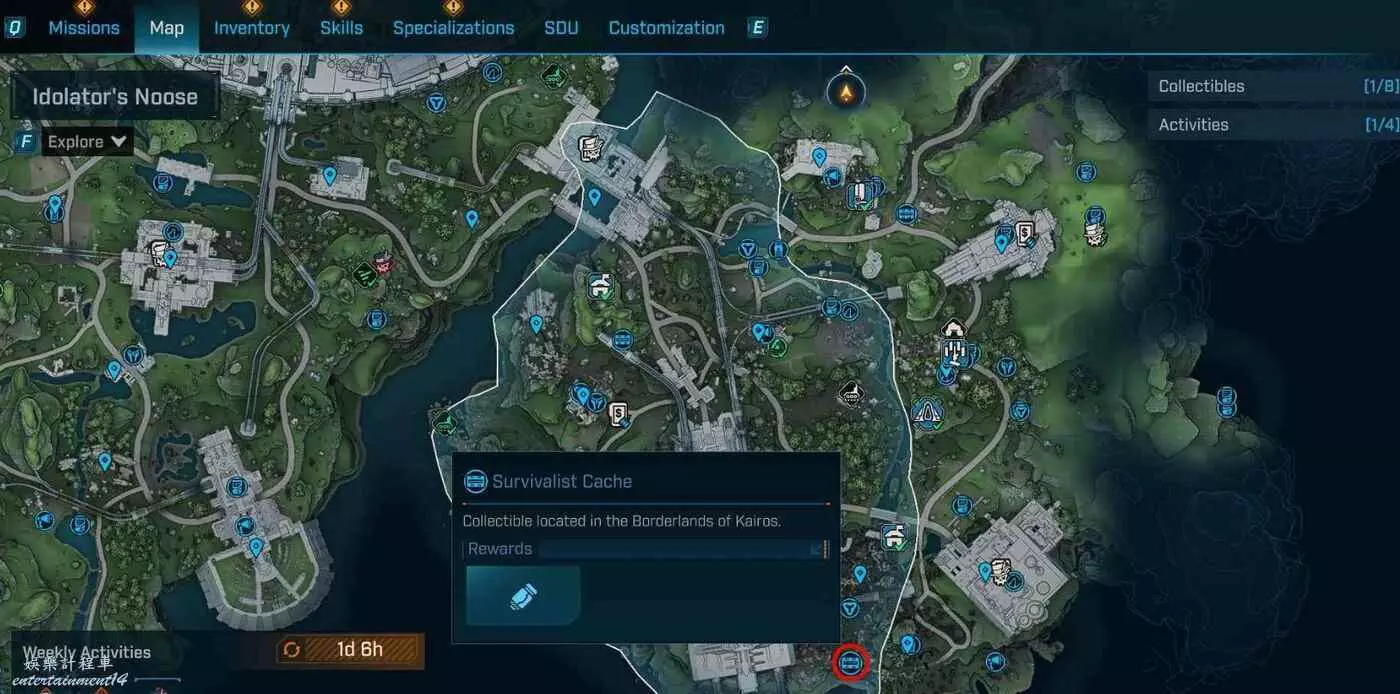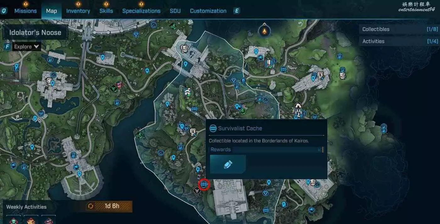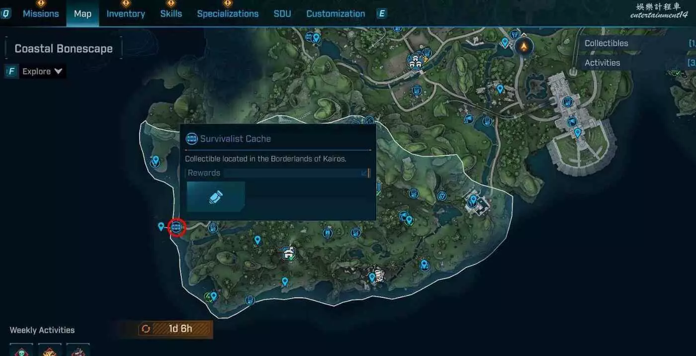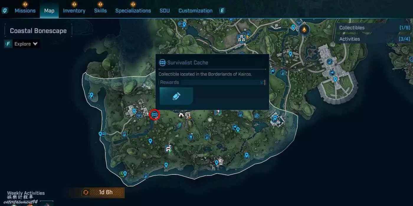 到頂部朝入口折返,在正對入口的斷橋處往右看,有處平台。抵達平台後,在棚屋旁就能發現庫存。