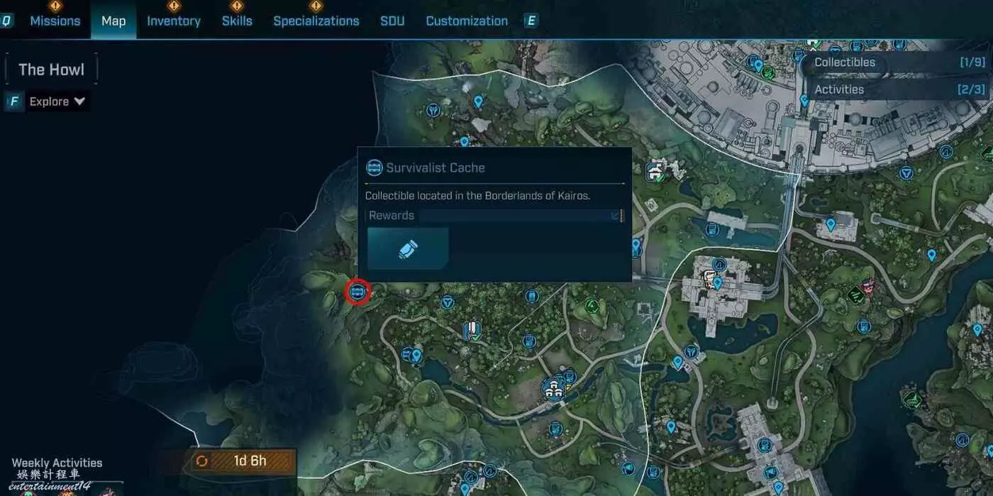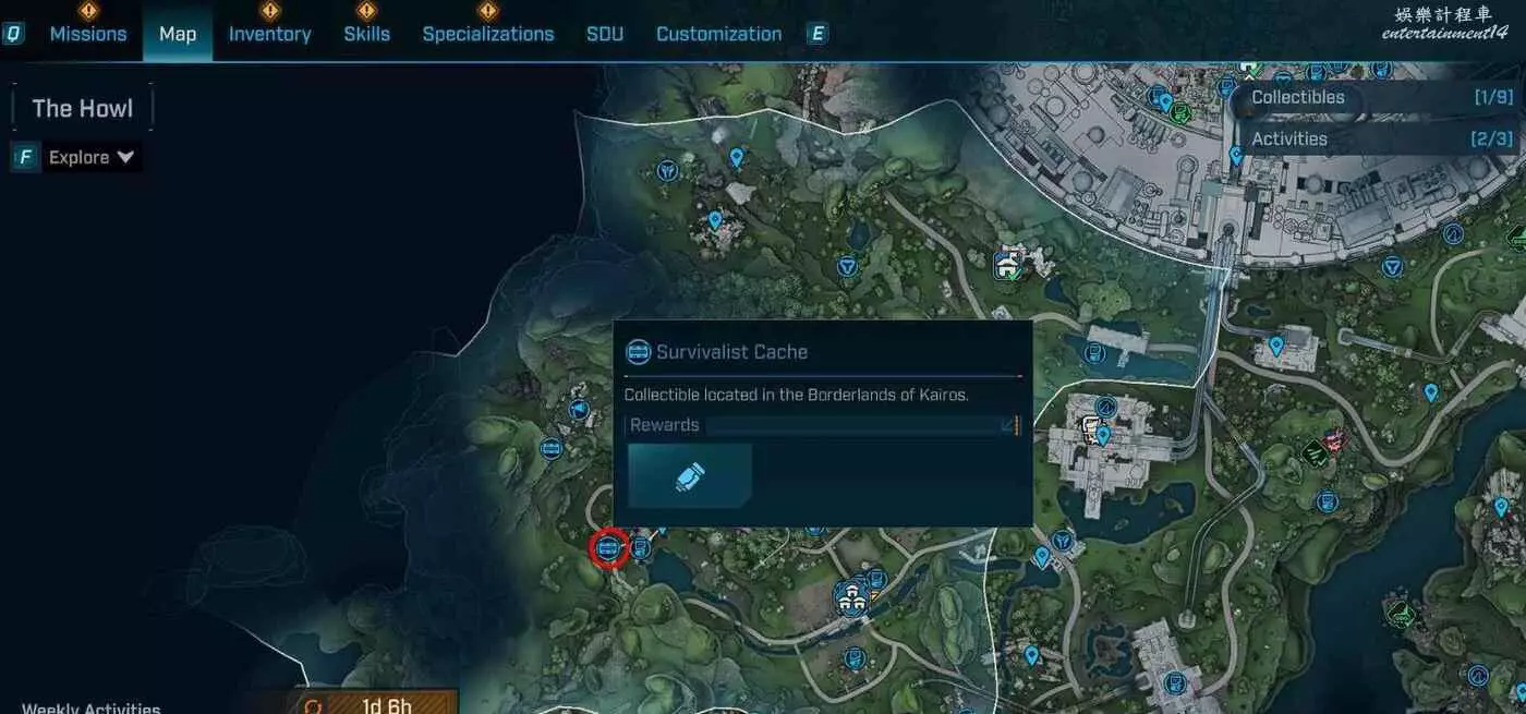 前往狂亂郡上方小山坡,就在房頂上。