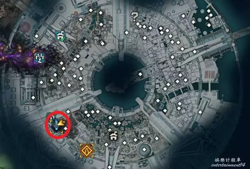 按照下圖標示的路線前往下一個區域,與控制台互動以消滅所有敵人。