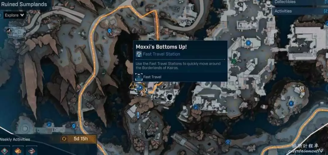 此時會出現新任務目標【尋找贊恩】,地圖有標記,通常在卡卡地亞焚毀區 – 廢墟窪地 – 莫西的不醉不歸!