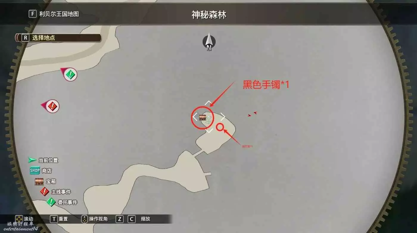 調查格魯納門左邊的寶箱獲得7種屬性的耀晶片各50枚,並以此寶箱為起點,調查北邊的閃光點,獲得耀晶石塊*100,調查東北方的寶箱獲得復活藥*1(實在找不到就看神秘森林入口的東邊),可以在路上弄各種魔獸食材,並在章節結束離開洛連特前保證每種魔獸食材數量不低於10個,可能到柏斯會用到