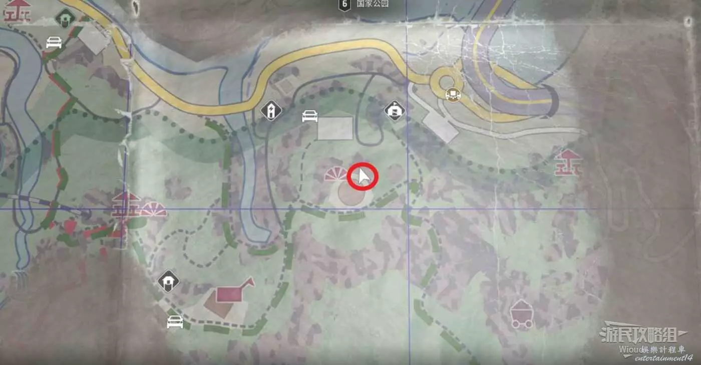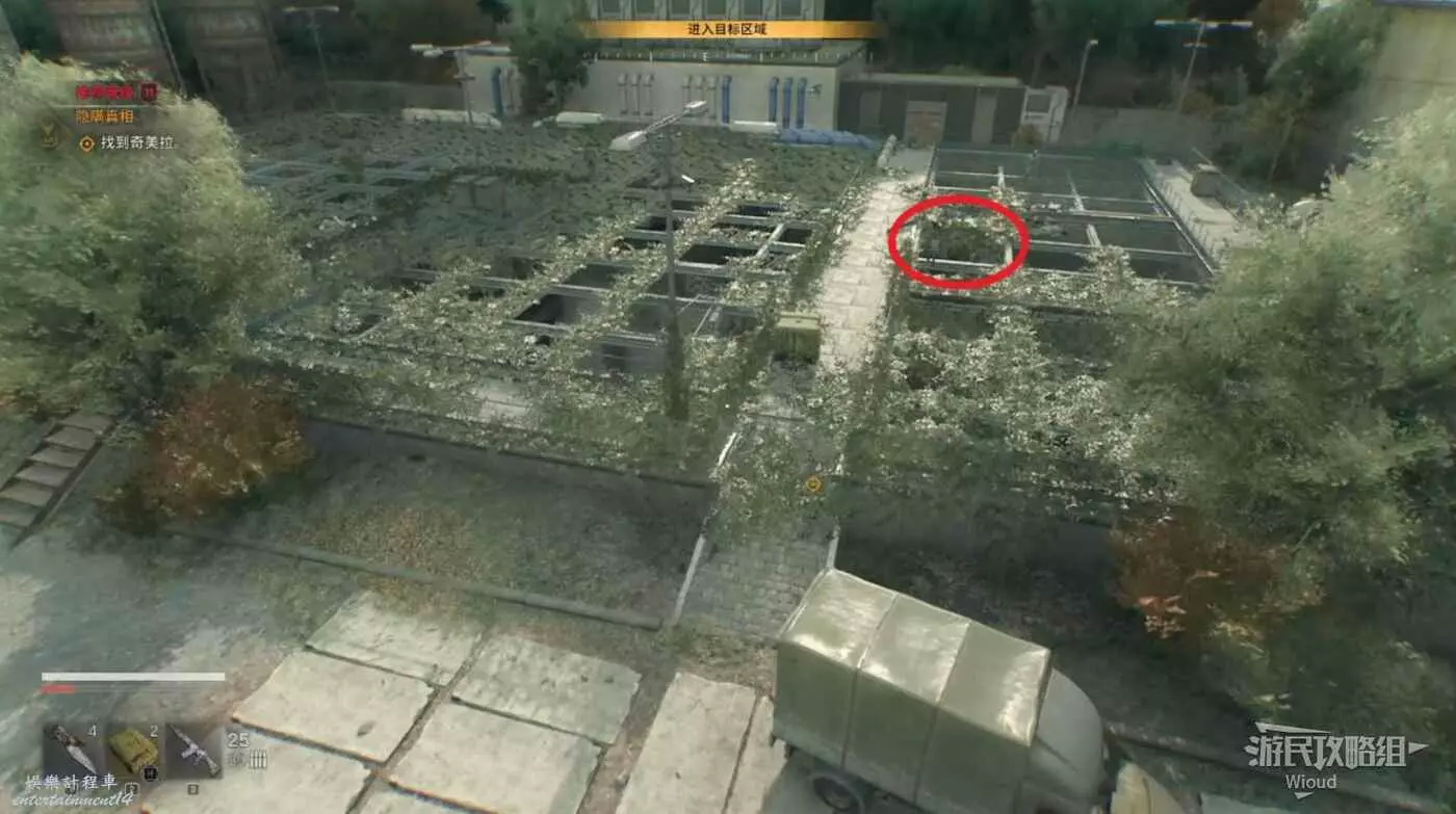 然後來到下圖紅圈所示位置,瓦斯罐就在此處的一個灌木叢裡。