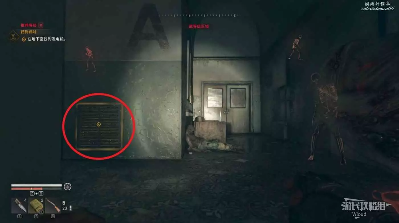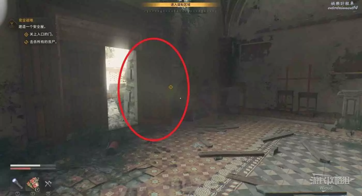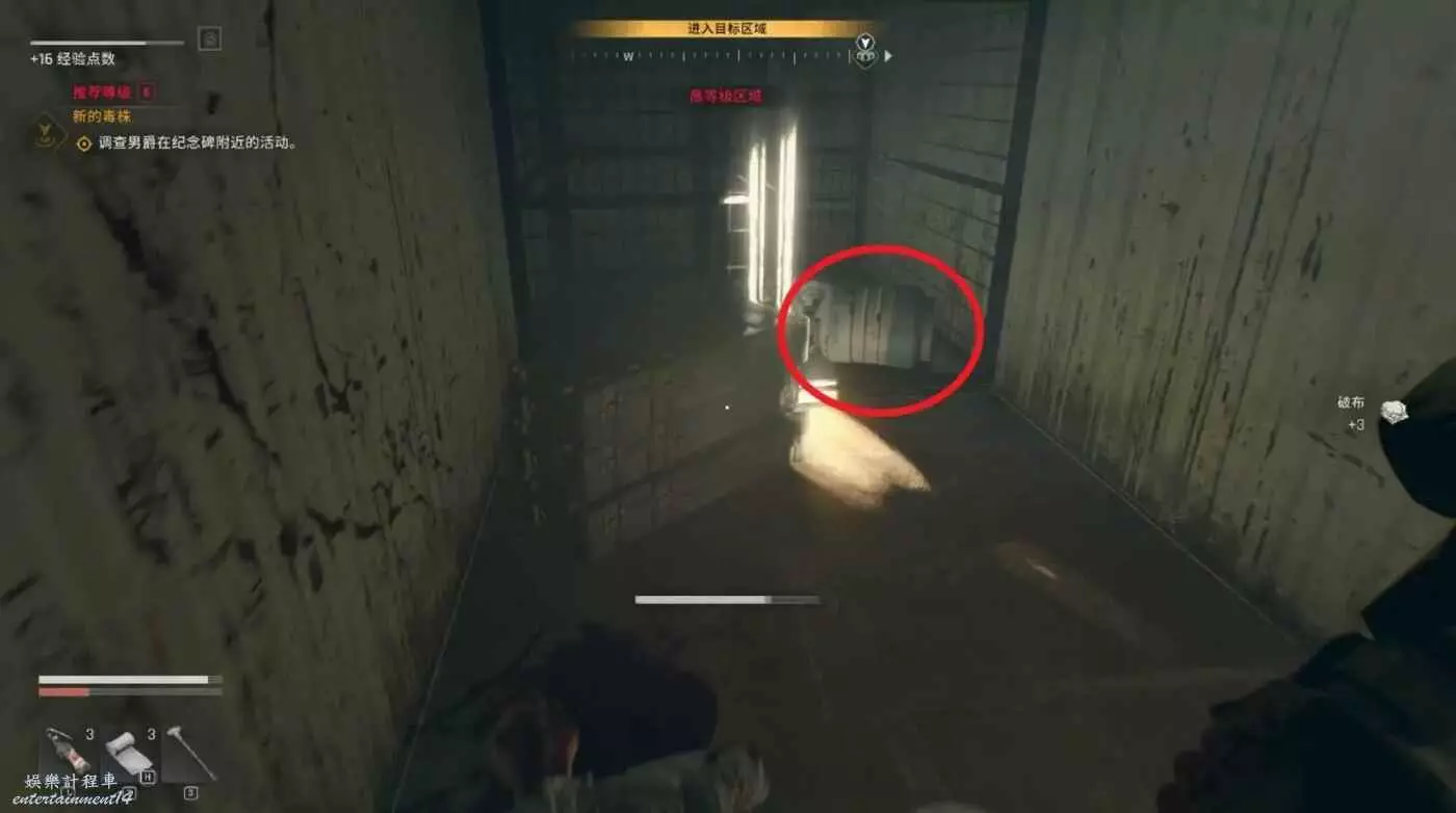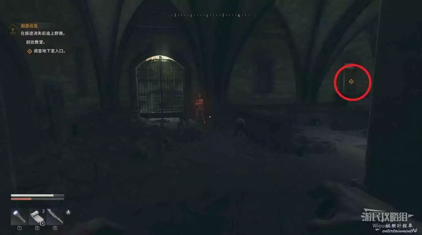 這裡啟動“生存者感知”從下面右側的入口進入地下室。