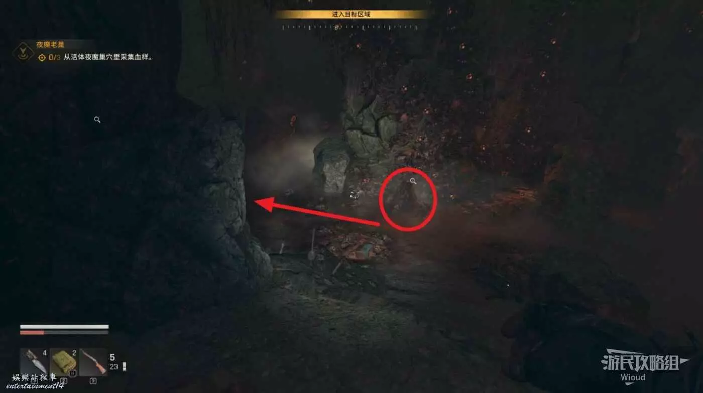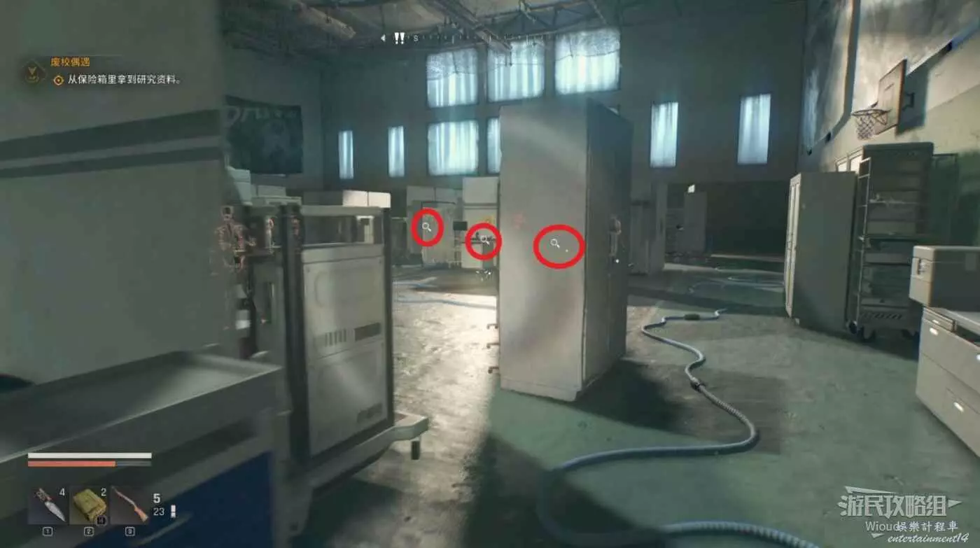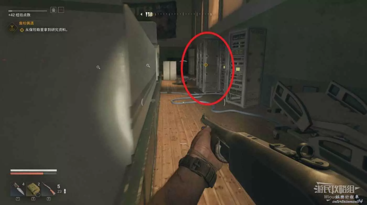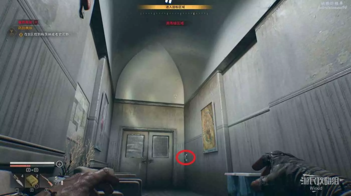 這裡啟動“生存者感知”從下面右側的入口進入地下室。