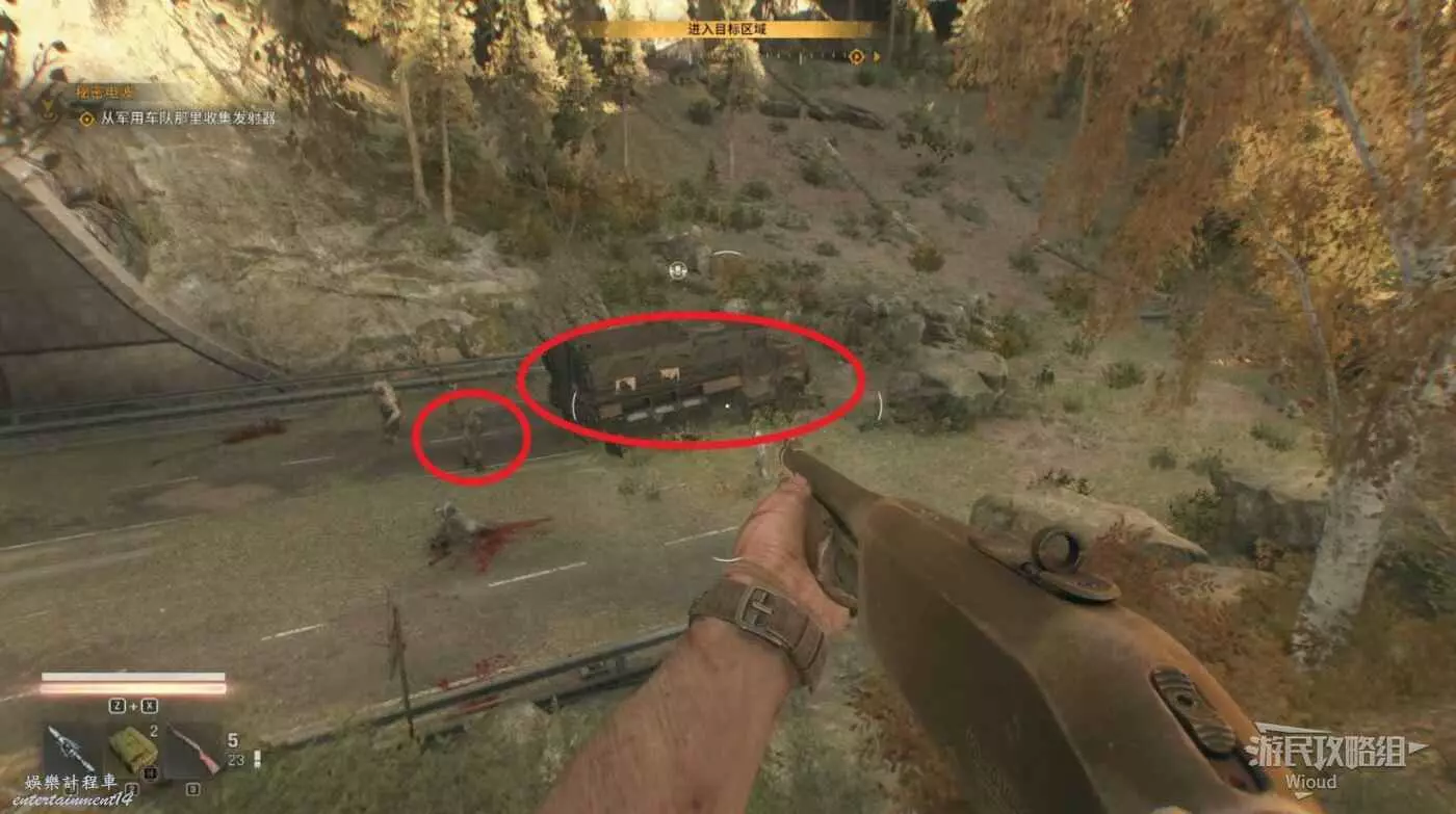走到目標位置,和卡車裡面屍體互動,拾取屍體旁的文件。