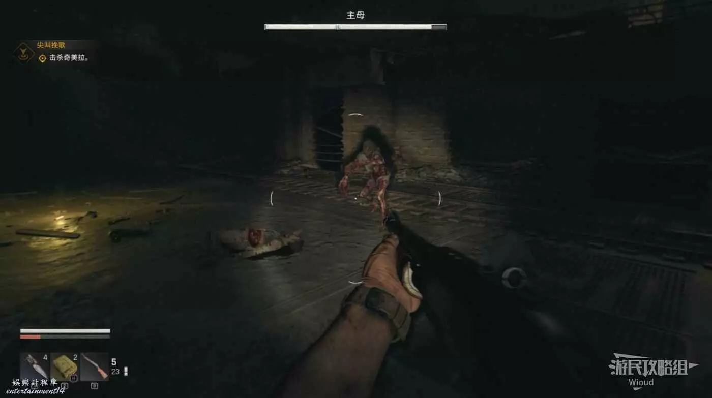 裡面走不遠觸發和主母的戰鬥,這個敵人非常善於隱藏自己,可以通過聲音判斷其位置,然後追著打就行。