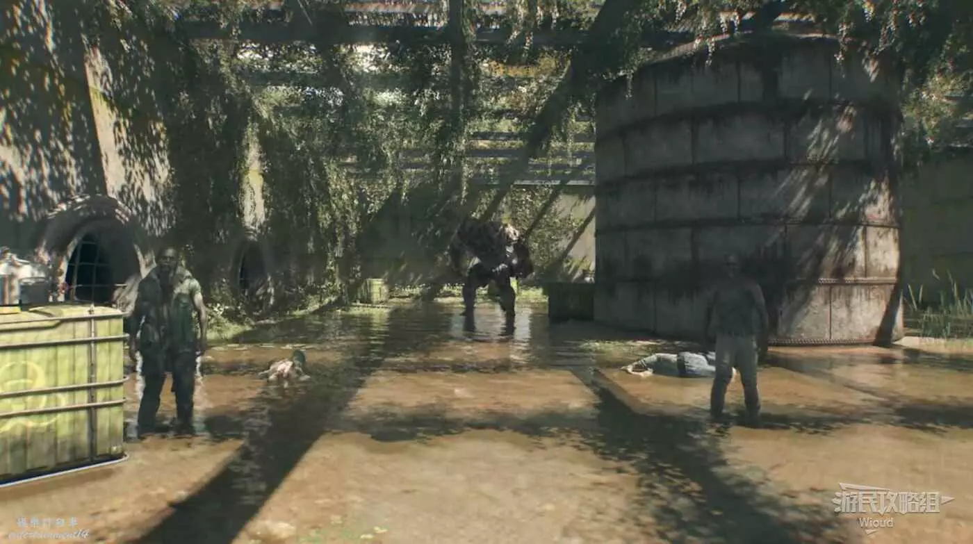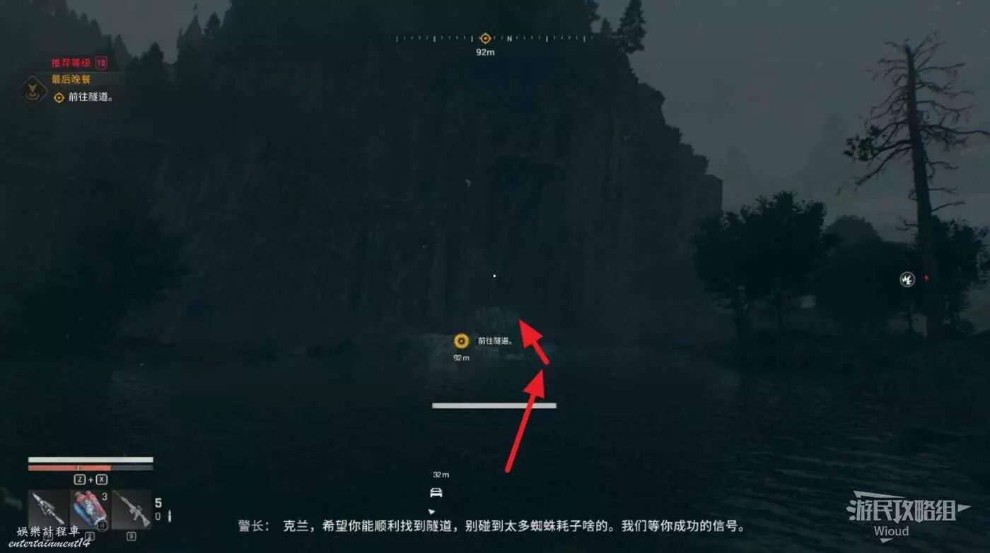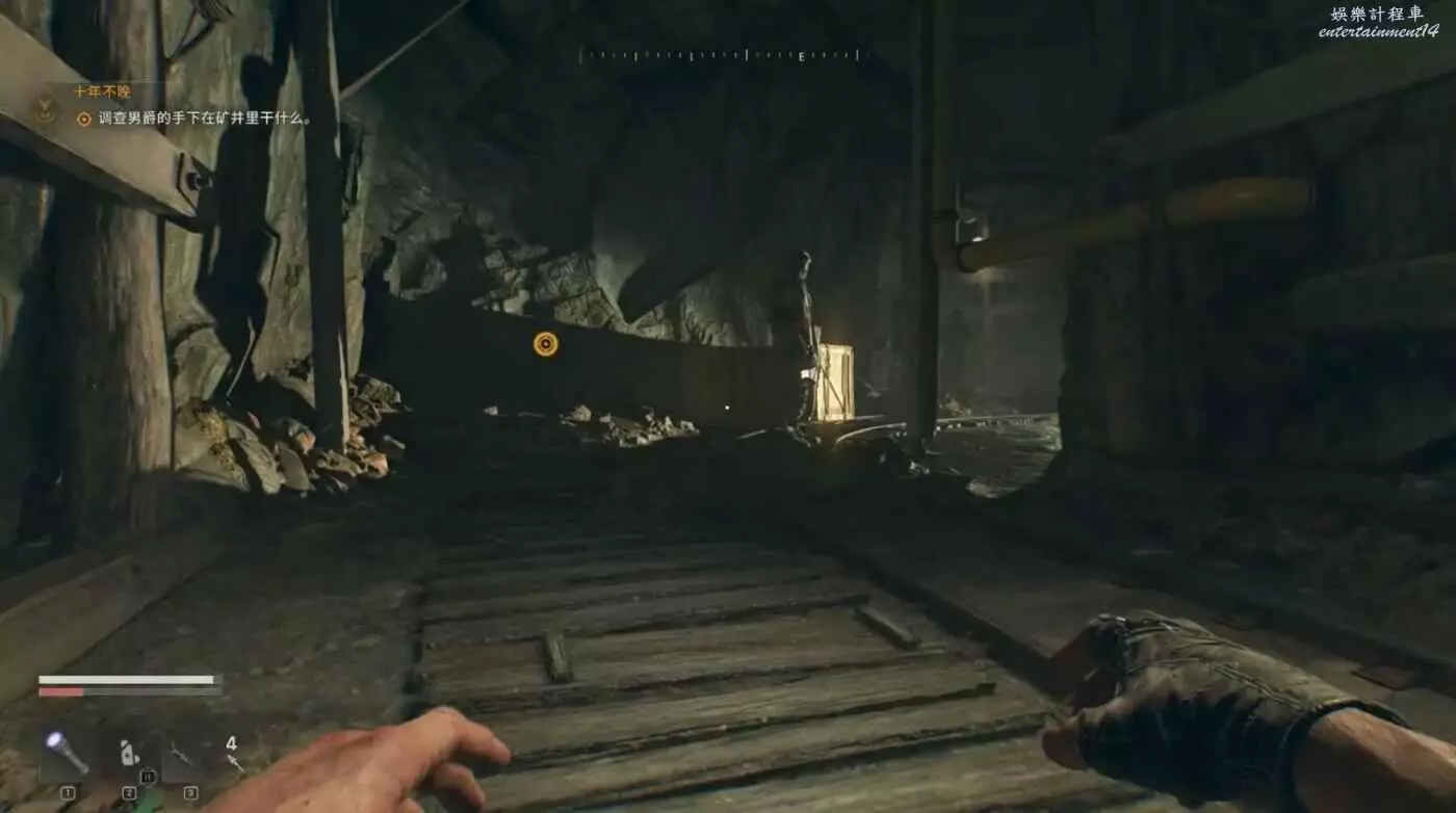 走到目的地火車隧道入口,進去沿路走到一個開闊區域,注意入口左側有一個埋伏玩家的喪屍。