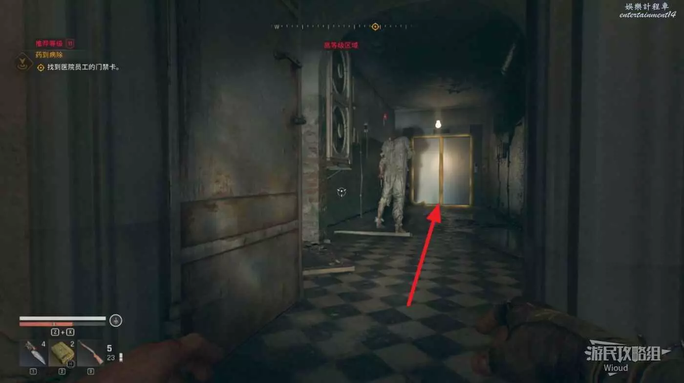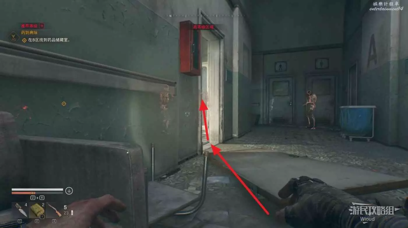注意第一扇門前的喪屍是裝死,過去就會撲過來。