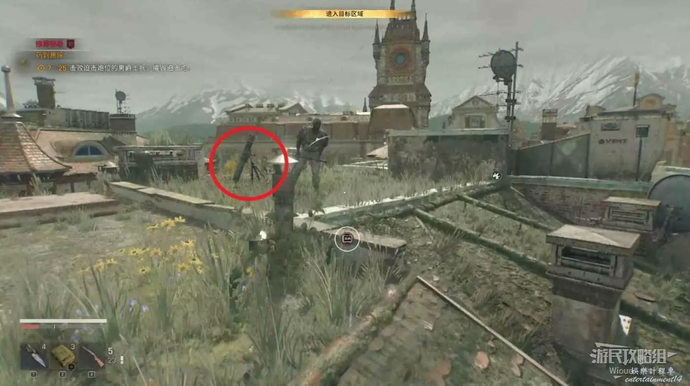 此時出現新的倒計時,前往標記點將此處的敵人幹掉並用近戰武器破壞掉迫擊炮,重複三次。