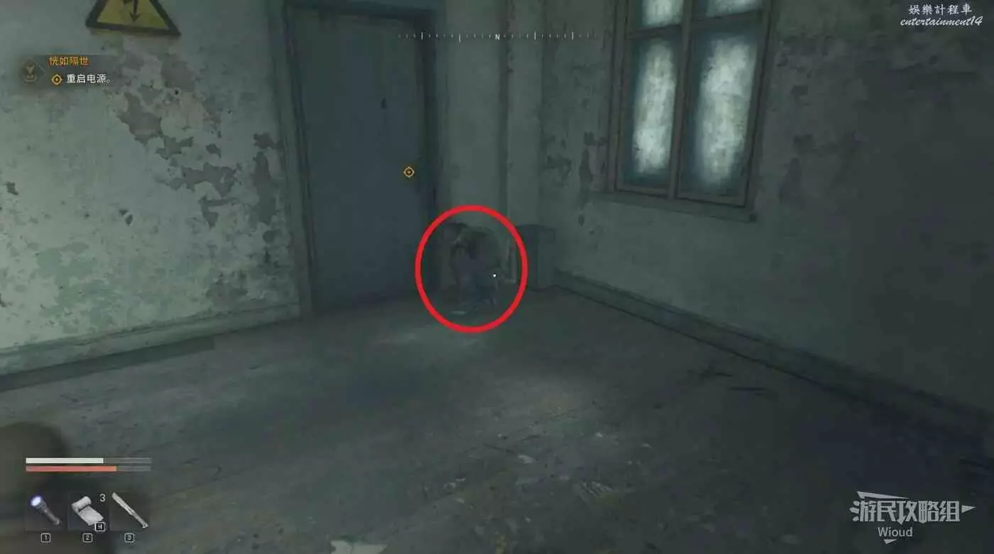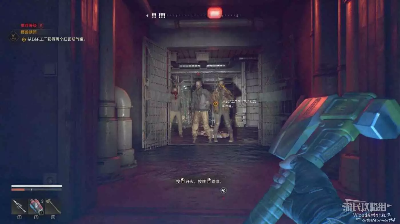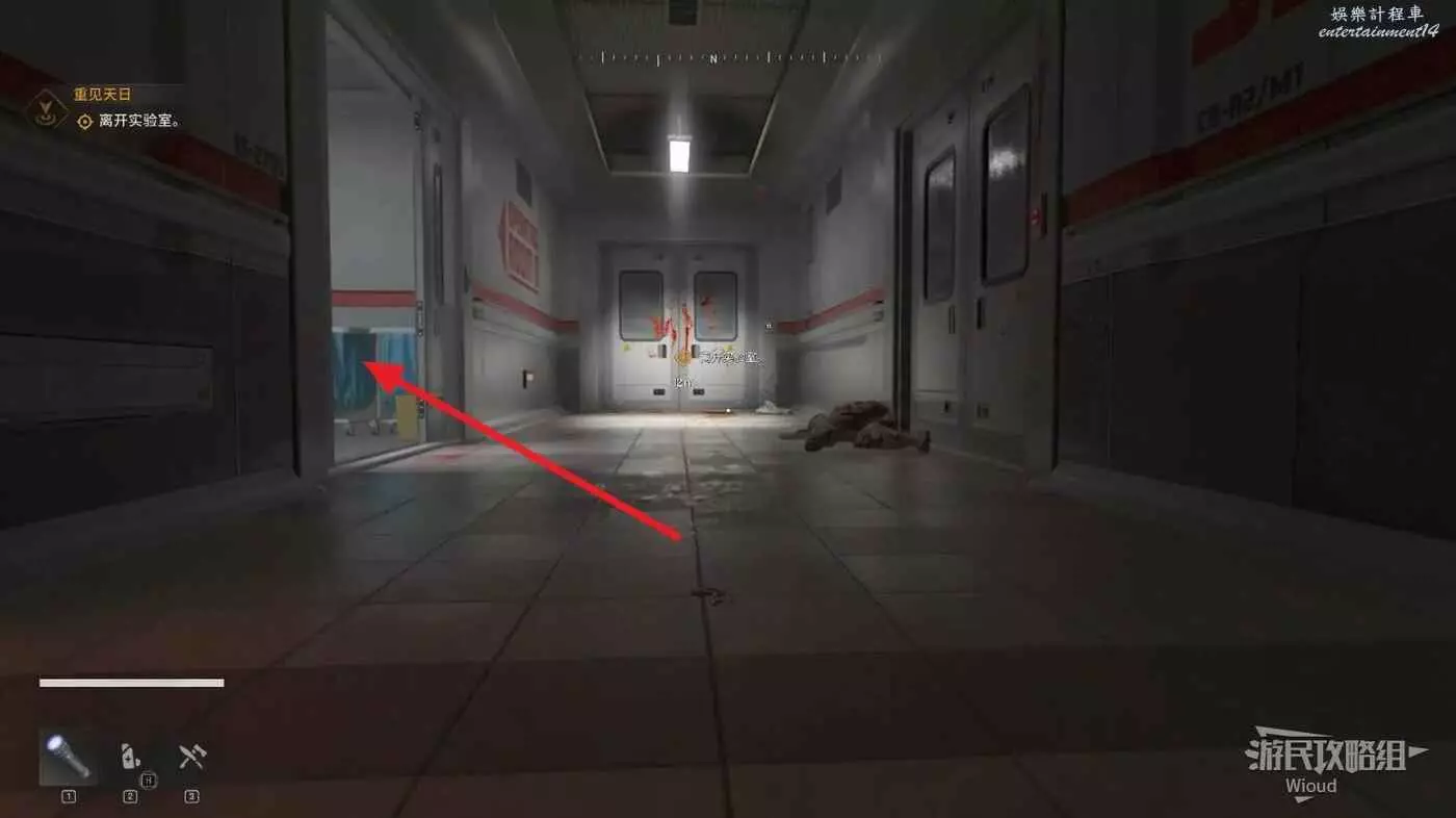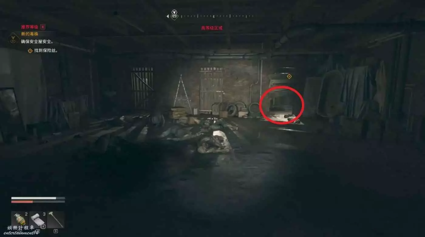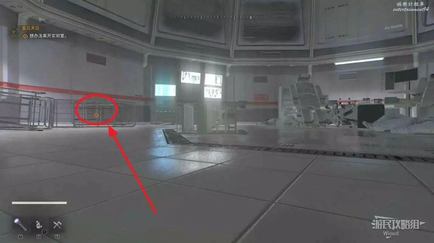 沿著路徑移動到底層,我們需要進入底層區域拿到兩個瓦斯罐,底層入口有紫外燈。