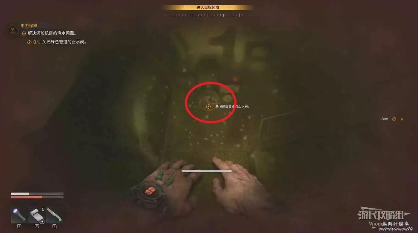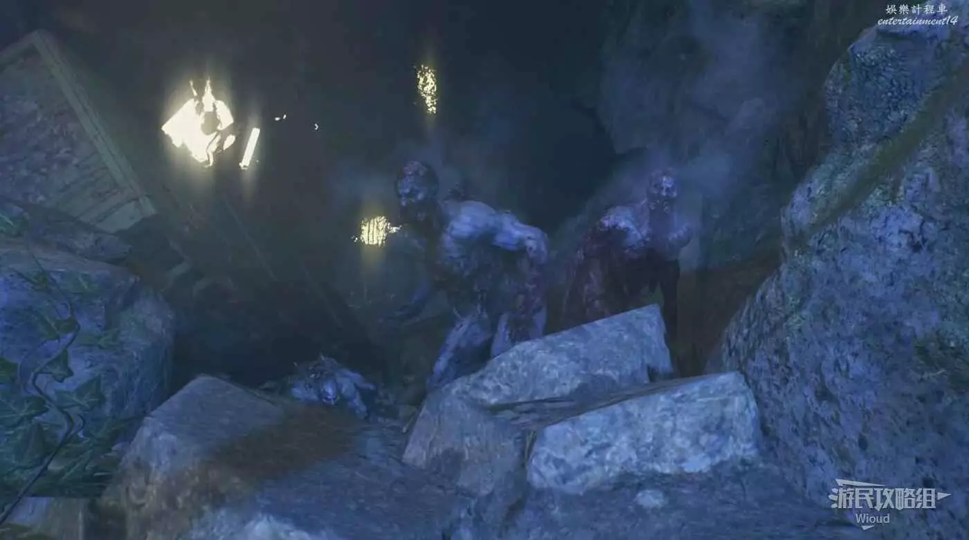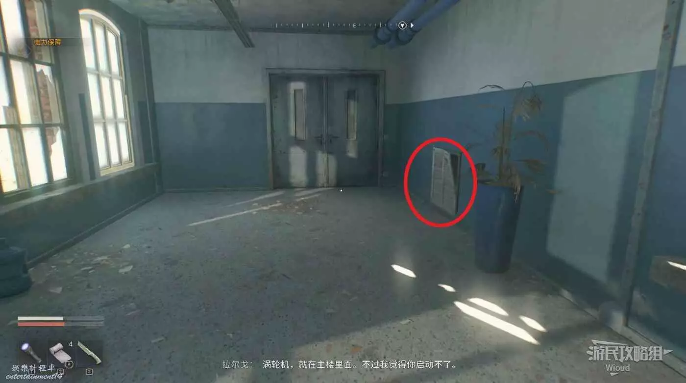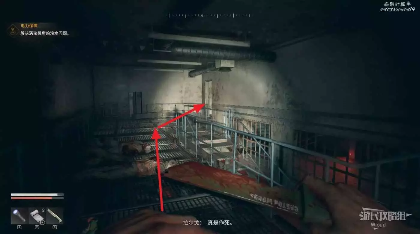 沿著路徑移動到底層,我們需要進入底層區域拿到兩個瓦斯罐,底層入口有紫外燈。