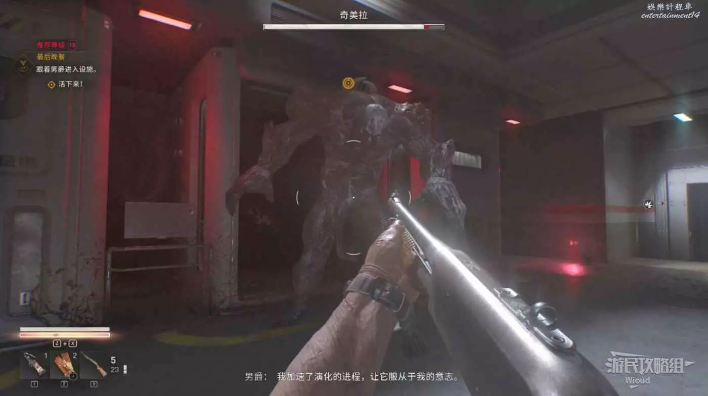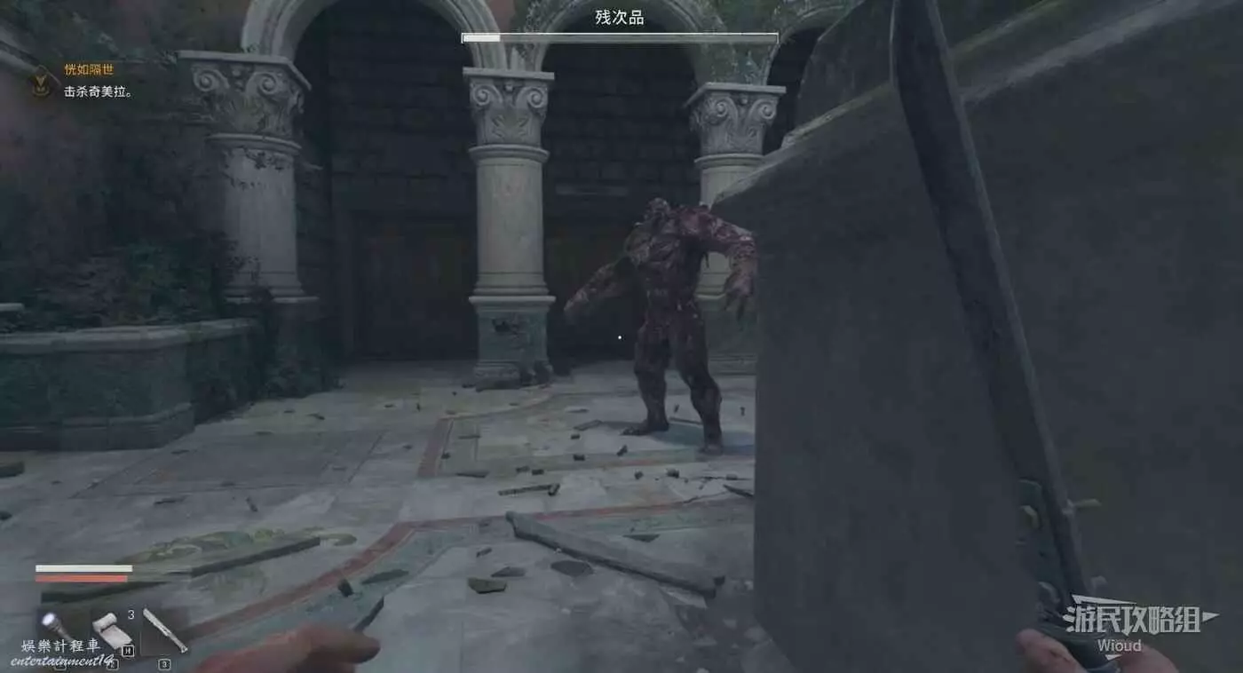 回到市政廳拾取門口的瓦斯彈,然後擊敗過來的奇美拉敵人,第二波敵人幹掉殘血會被莉蒂亞控制。