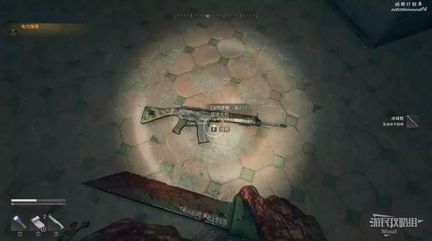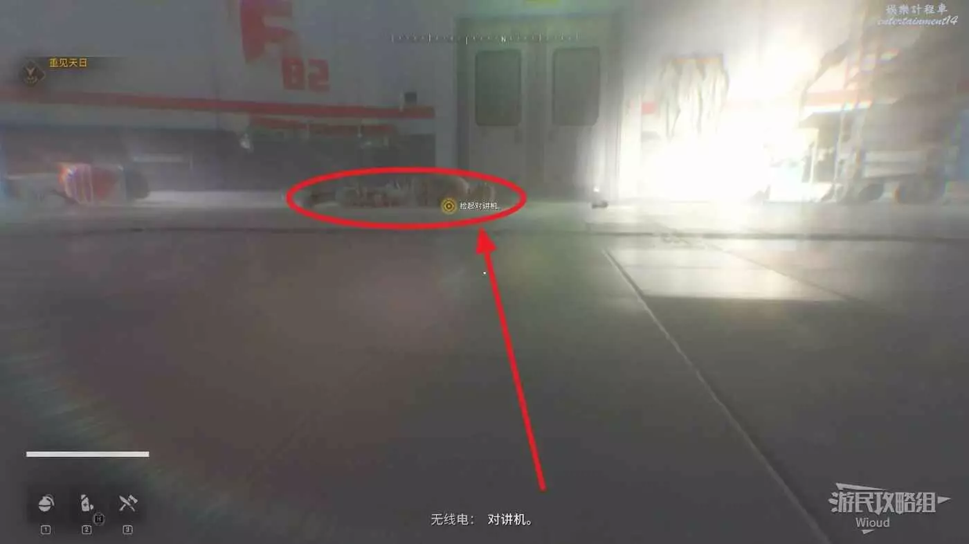 遊戲正式開始後,爬到對面屍體前,調查屍體獲得對講機和手電筒。