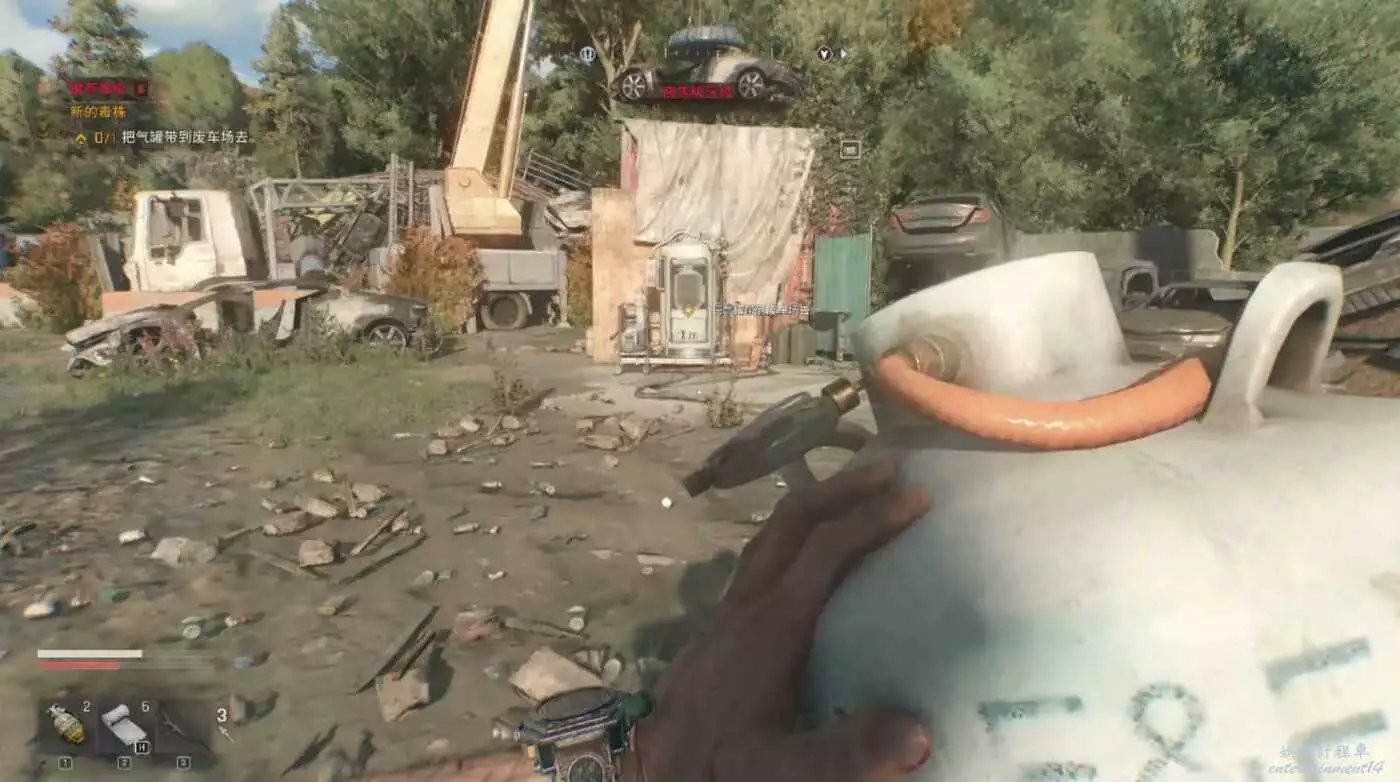 將罐子放到建築外面,觸發劇情後,開車沿著標記軌跡移動。