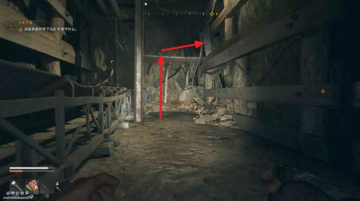 去流放者山洞和莉蒂亞對話,等開車來到山腳下,跟隨指引進入隧道,把擋住的門炸開,沿著隧道路線一直走。