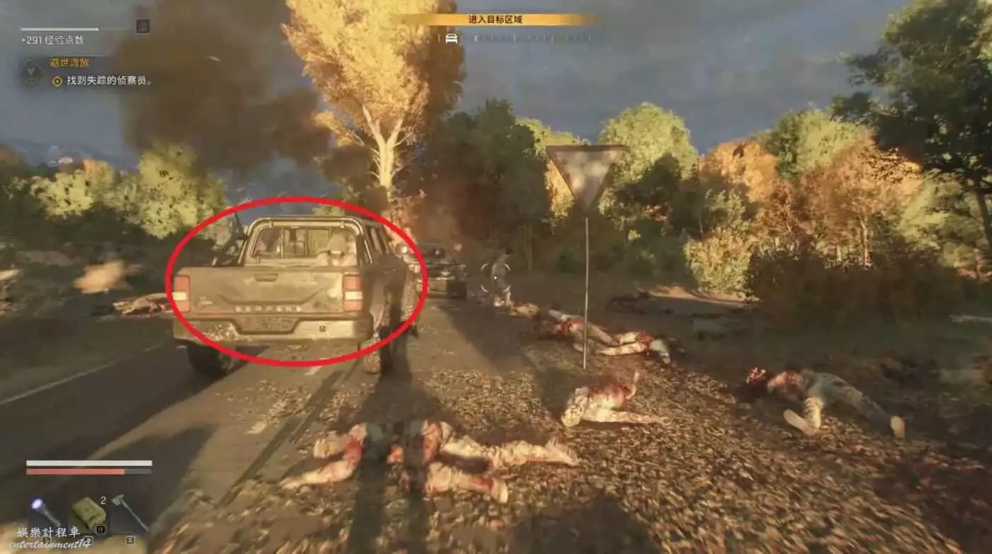 幹掉穿軍裝的喪屍,打開右邊軍車的後備箱拾取裡面的東西,隨即解鎖下一個中繼站的位置。