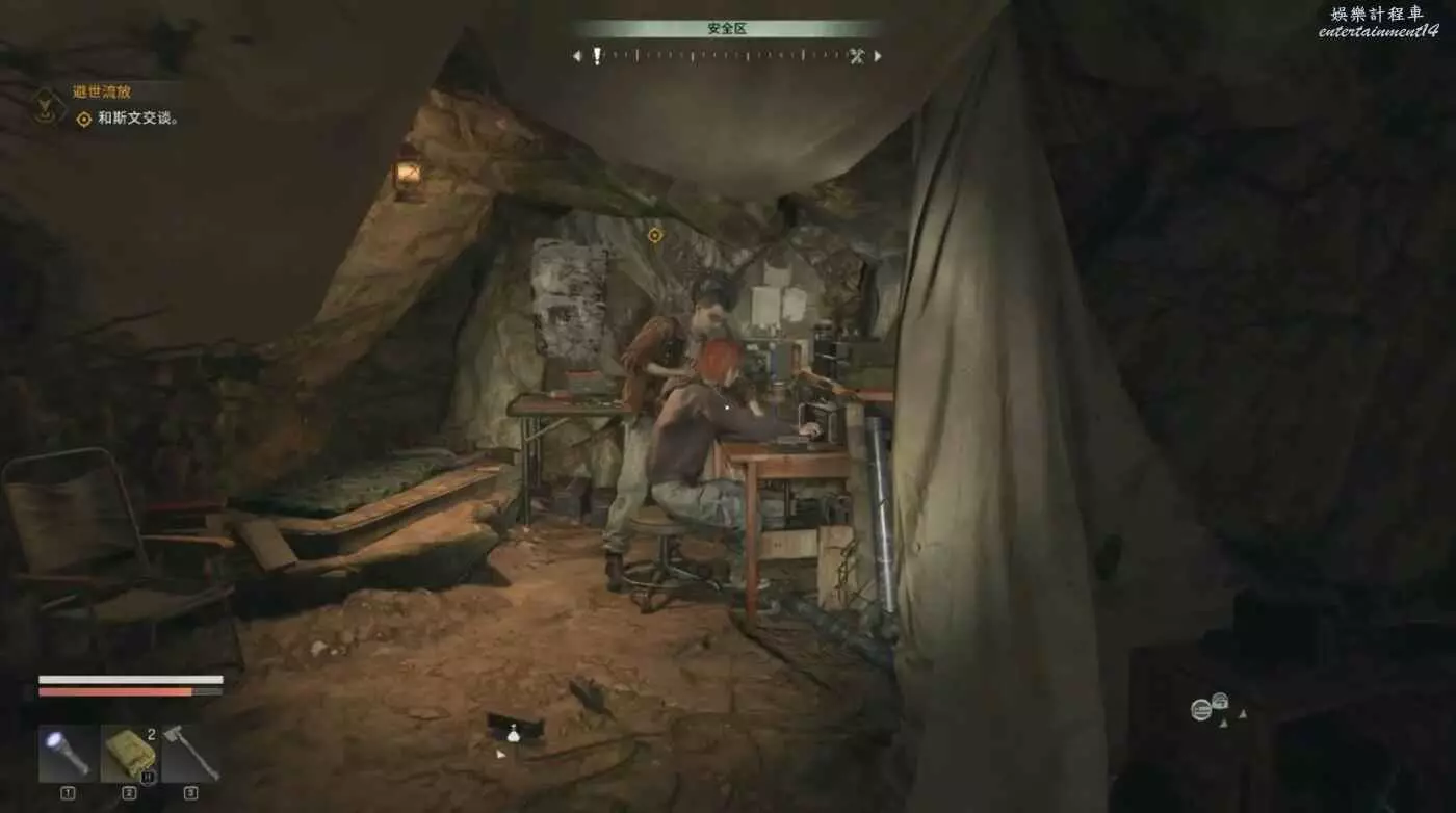 此時外面固定刷為晚上,走到最近的一個安全屋睡一覺,去下一個標記點和莉蒂亞對話。