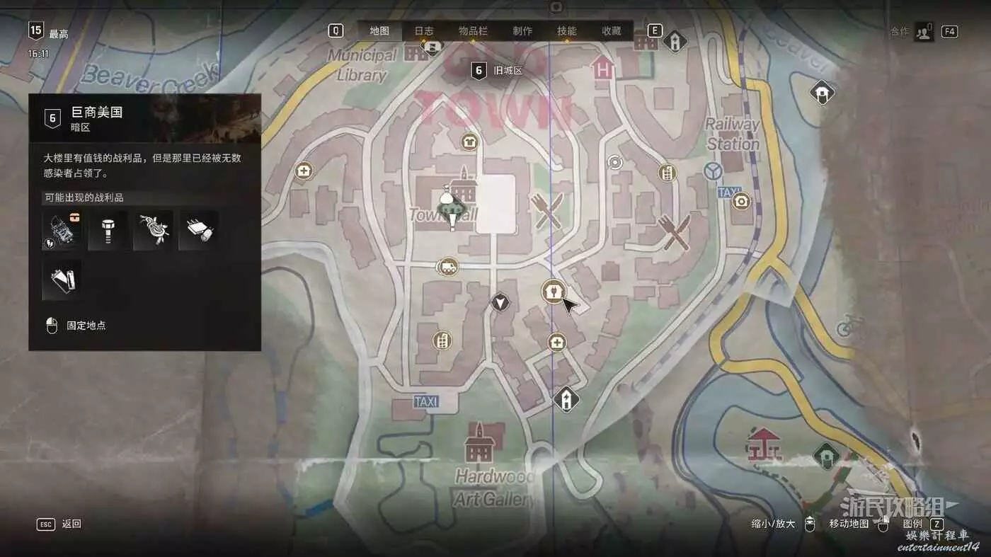 將游標懸停在地圖上的暗區圖示上,即可查看該暗區的主要資源類型,看到線材和電子部件的圖示就說明該區域存在這類資源。