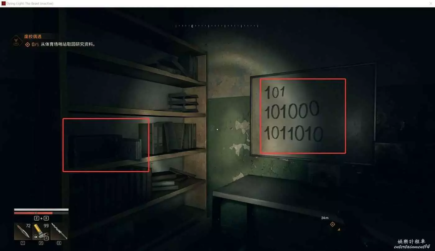 垂死之光 困獸 學校保險箱密碼分享 20 9 月 2025-09-20 廣告 作者:GDK-HQ 來源:bilibili 我們可以看到,我這裡的保險箱已經被我打開了,旁邊的白板上即為進制加密的密碼,密碼分別是5,40,90。