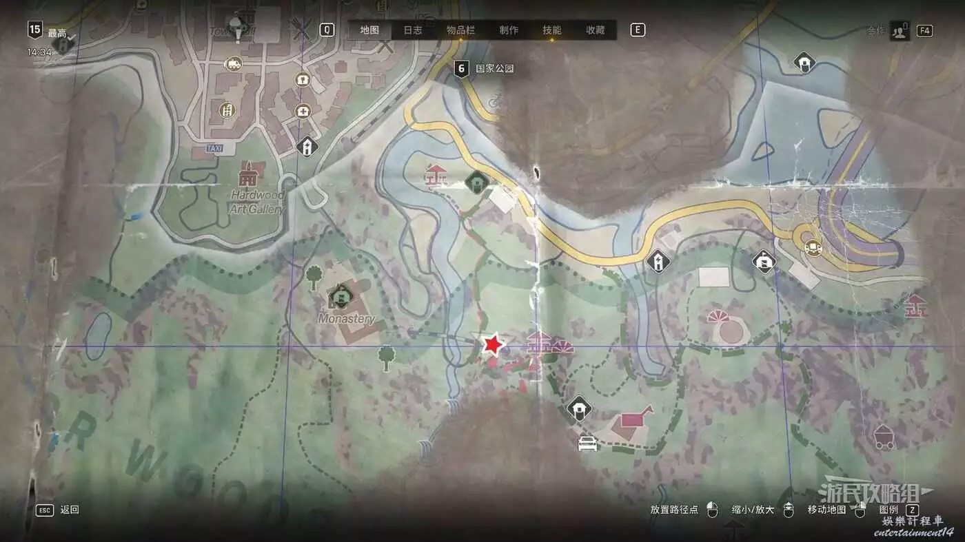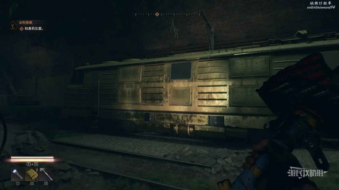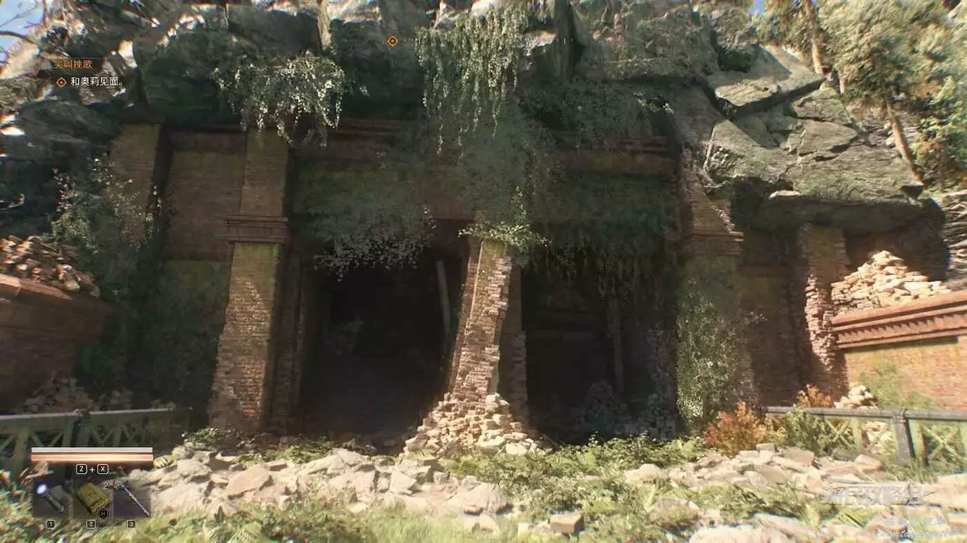 前往下圖紅色星標位置可以看到一條斷裂的鐵路,月台處崩塌了,進入崩塌的位置。