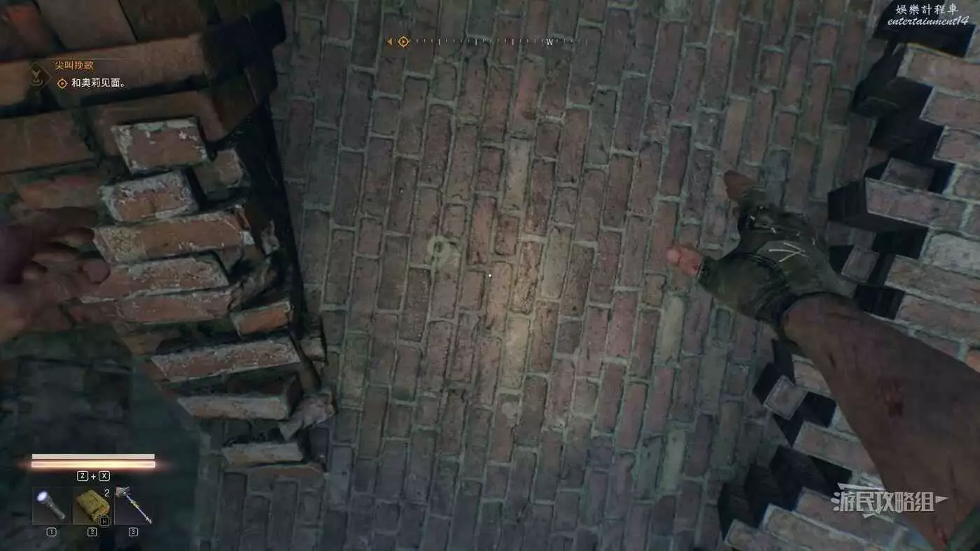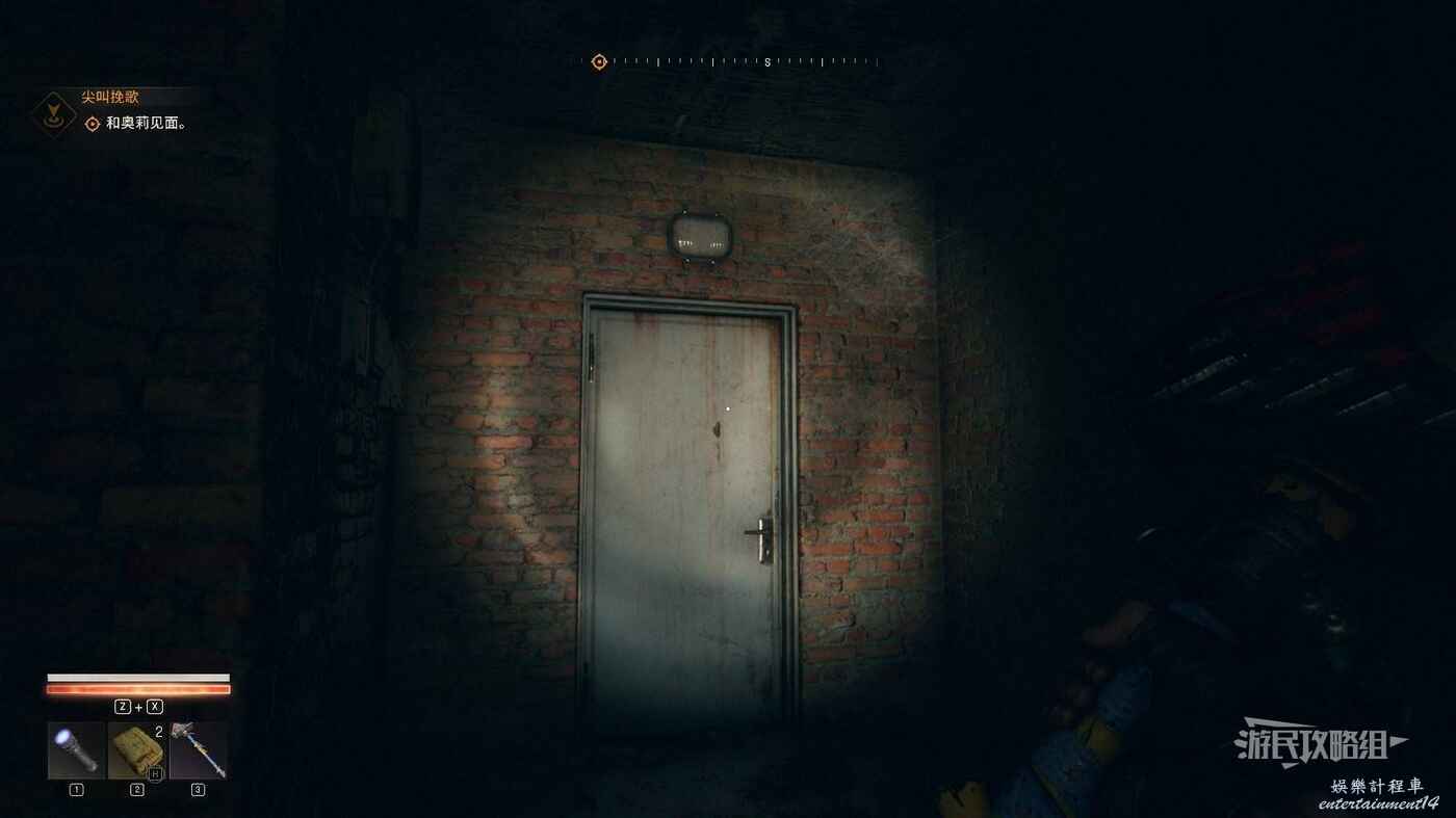 沿著磚塊往前走,途中還有一些小房間和通風管道,裡面可以拾取一些普通資源,但最終只有一條路通往盡頭。打開盡頭的門。