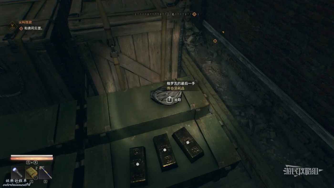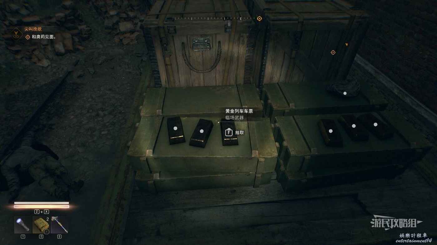 在列車前方的板子上可以拾取到【黃金列車車票】,和傳奇消耗品圖紙【格羅瓦的最後一手】。